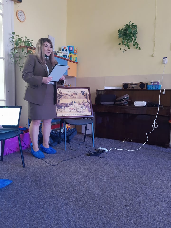 Dzieci rozwiązywały zagadki, rozpoznawały leśne zwierzęta,wydawane przez nie głosy.