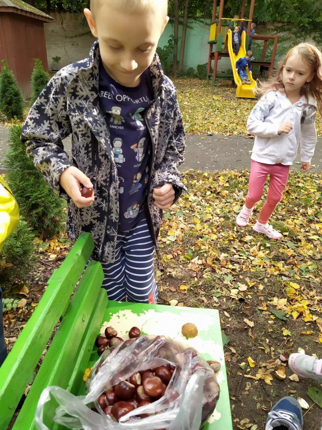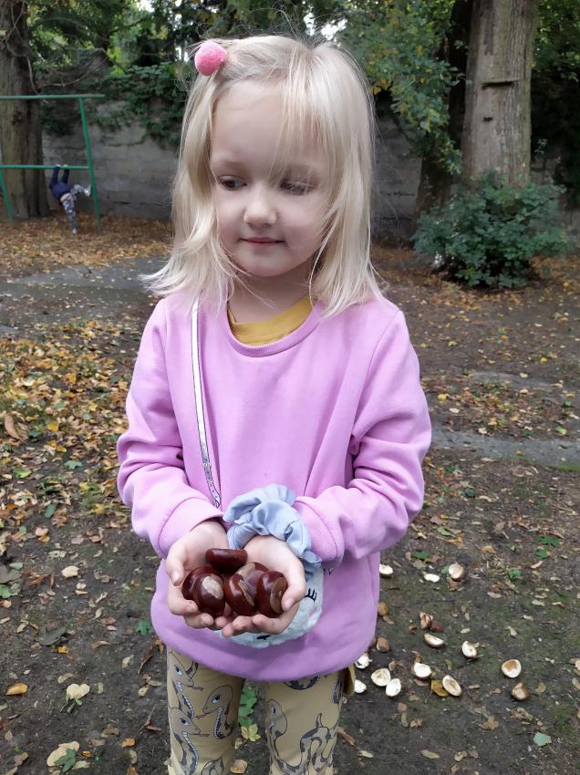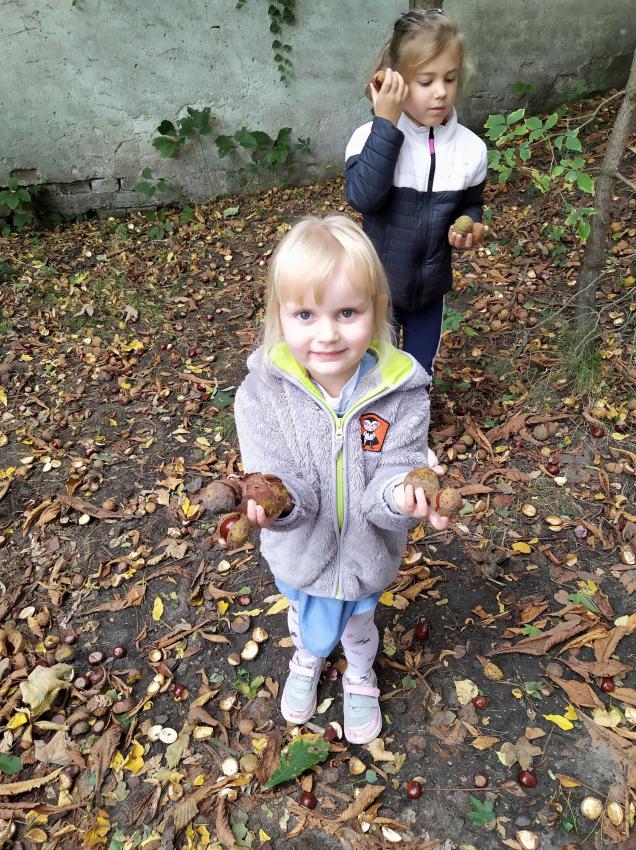 Zabawy jesienne w ogrodzie - Kasztanobranie oddziału III