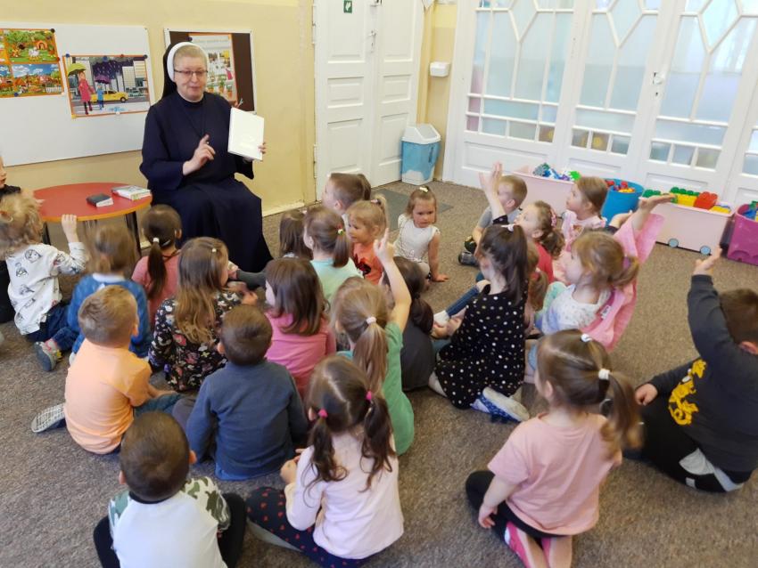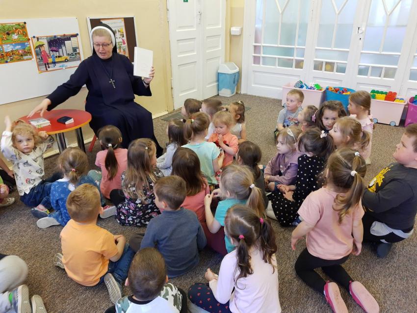 siostra Renata czytała dzieciom fragmenty Pisma Świętego.