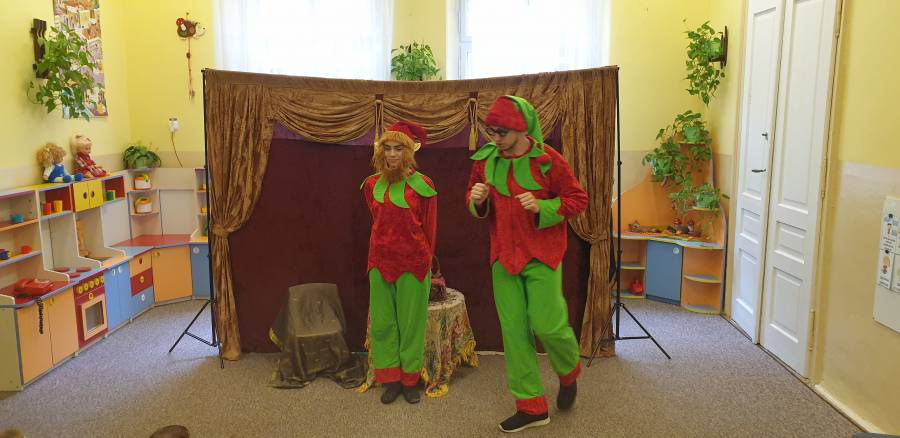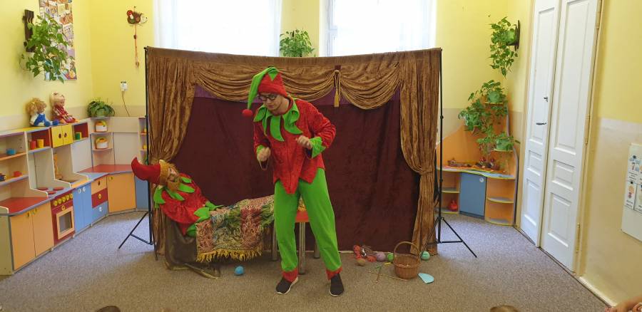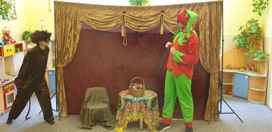 W dniu 12.09.2022 nasze przedszkole odwiedzili aktorzy Teatru Skrzat z Krakowa. Aktorzy przedstawili bajkę pt. "Między nami krasnalami".