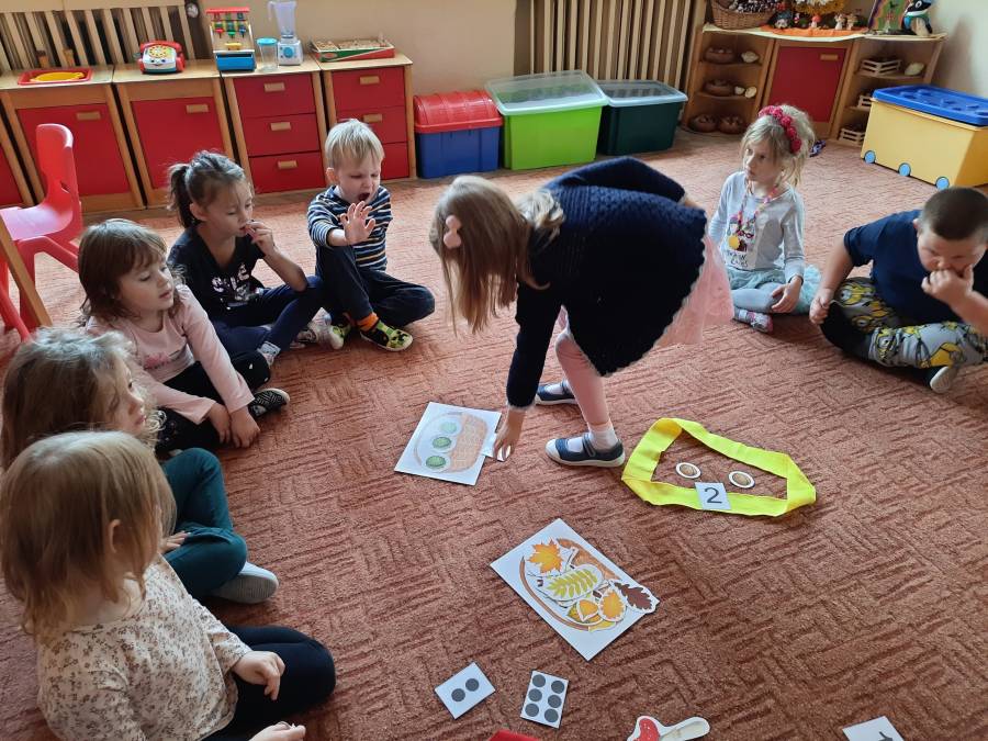 Ogólnopolski projekt edukacyjny ?Ciekawski Zajączek poznaje świat matematyki?. Dzieci z grupy II i III biorą udział w ogólnopolskim projekcie edukacyjnym ?Ciekawski Zajączek poznaje świat matematyki? . Celem głównym projektu jest wspomaganie rozwoju umysłowego poprzez czynnościowe nauczanie matematyki w różnych formach aktywności poznawczej dzieci w wieku przedszkolnym: językowych, plastycznych, muzycznych, ruchowych i przyrodniczych. Projekt powstał z myślą o spontanicznym zainteresowaniu dzieci treściami matematycznymi w codziennych sytuacjach. Realizacja projektu polega na wykonywaniu zadań zgodnie z tematyką zawartą w harmonogramie działań opracowanym przez autorów projektu. Zadania wyznaczone na październik zostały zrealizowane w obu grupach.