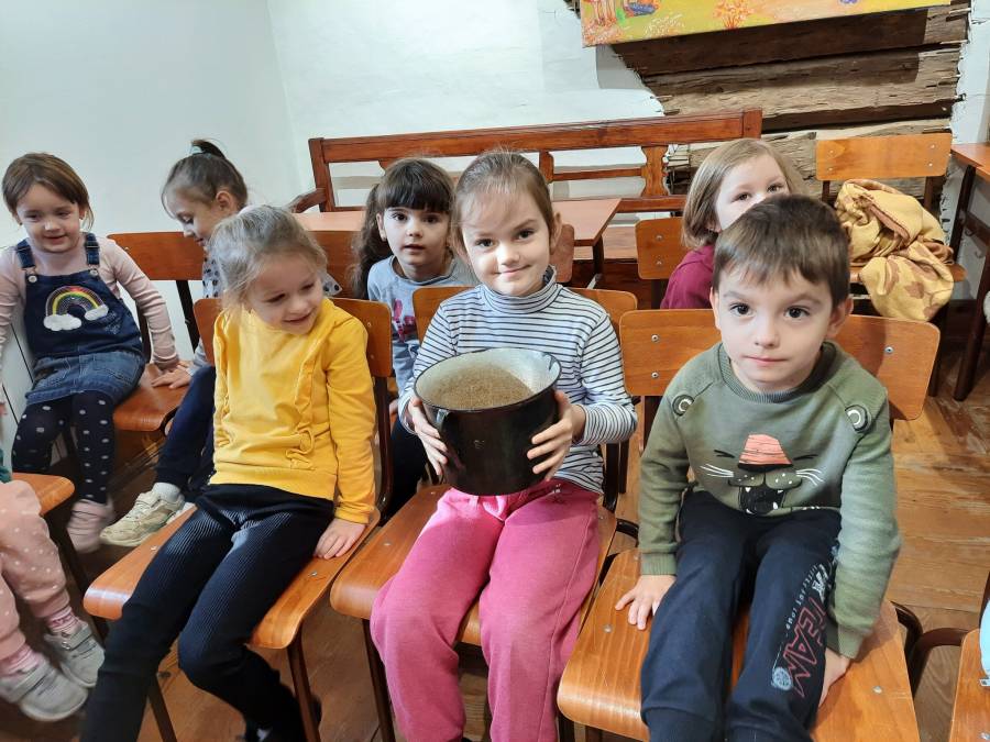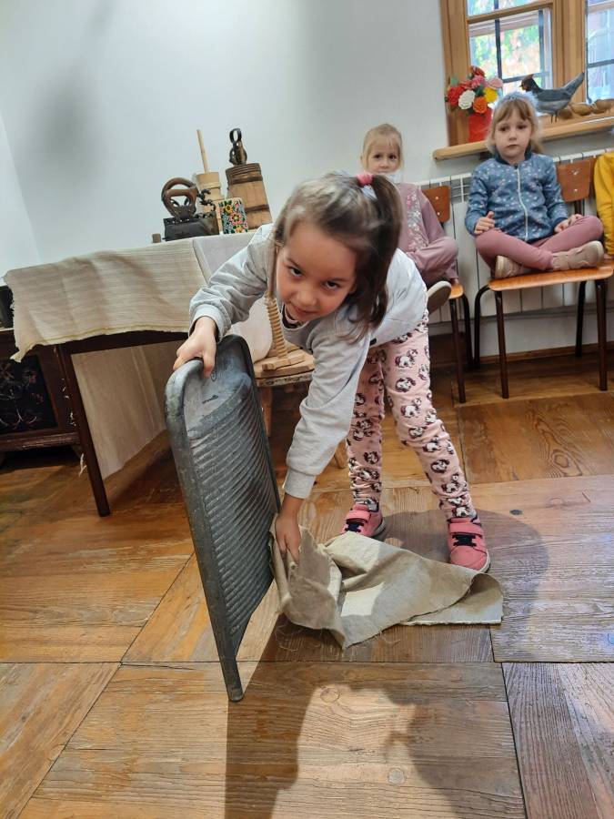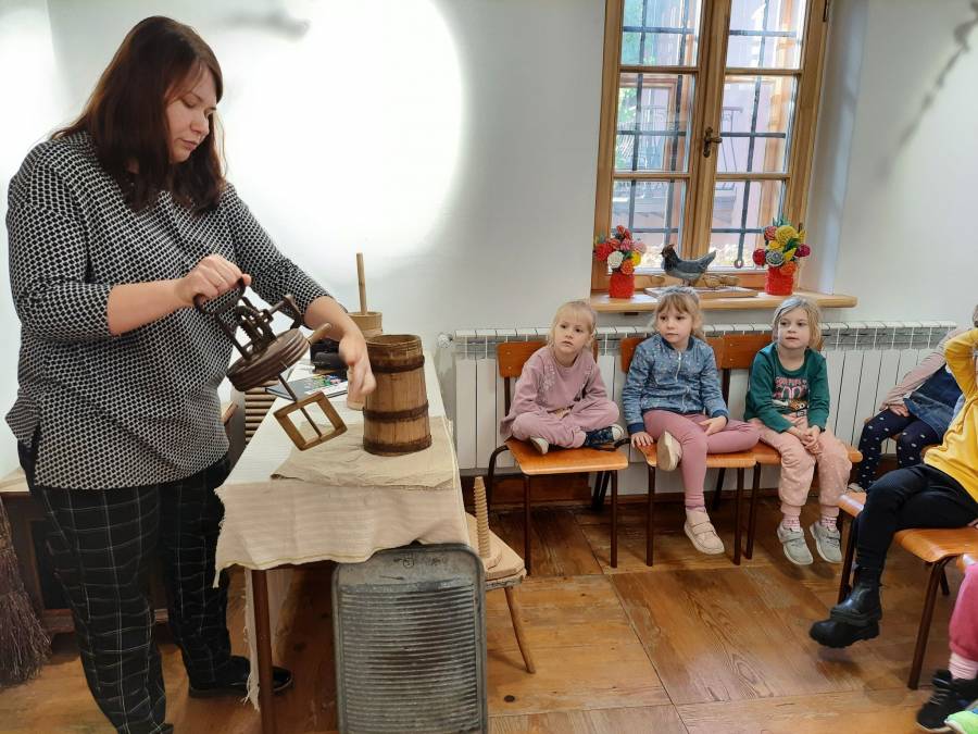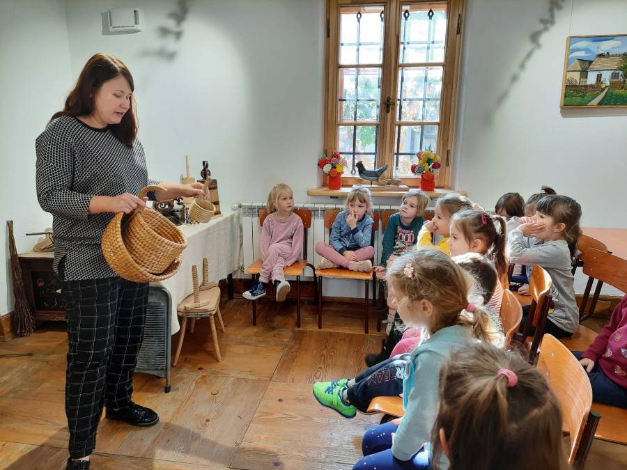 Dnia 12.10.2022r. przedszkolaki z oddziału II rozpoczęły cykl spotkań w Muzeum Etnograficznym w Tarnowie. Jest to cykl poświęcony tematyce etnograficznej.
