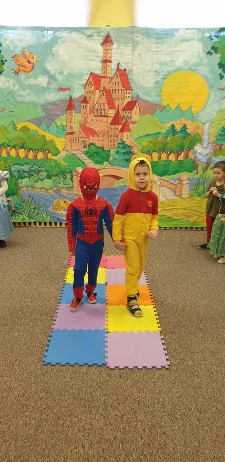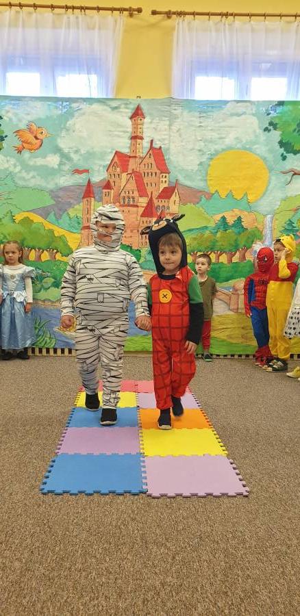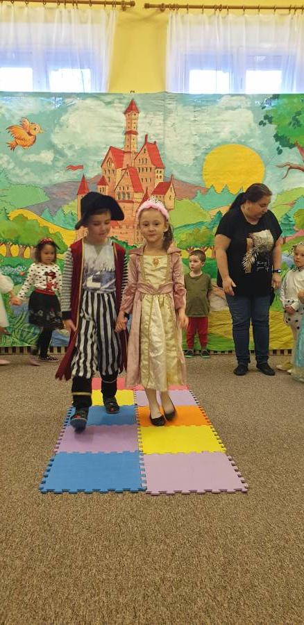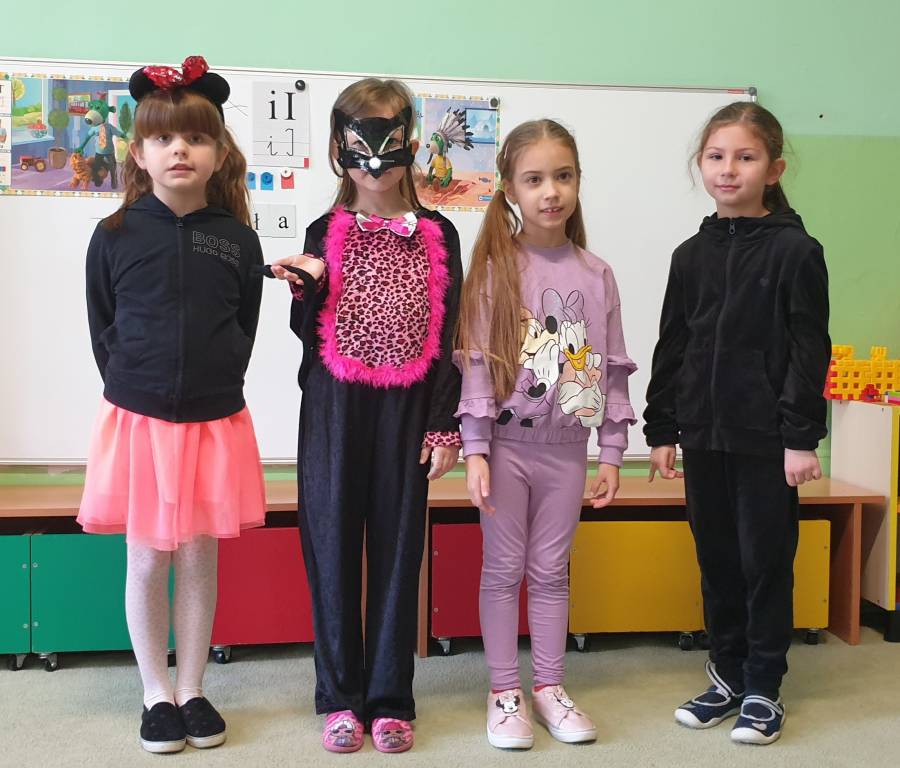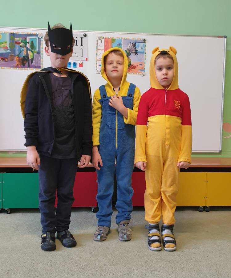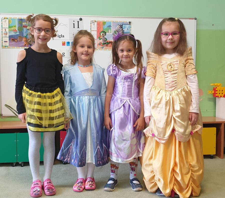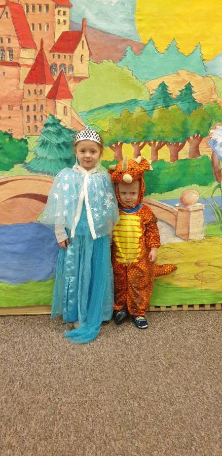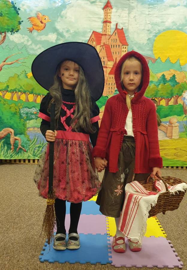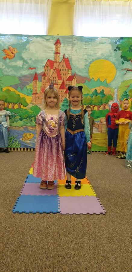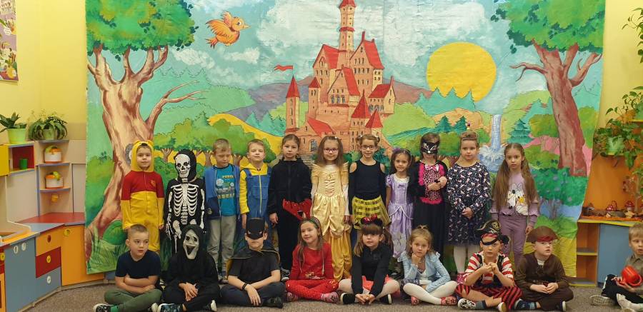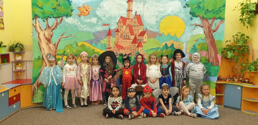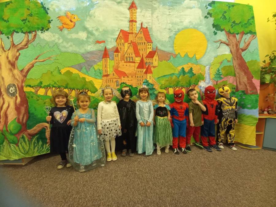Przedszkolaki wzięły udział w bajkowej zabawie. W tym wyjątkowym dniu przybyły do przedszkola przebrane w piękne bajkowe stroje. Wykazywały się znajomością treści bajek, rozpoznawały swoich ulubionych bohaterów, tańczyły i śpiewały. Spotkanie sprawiło dzieciom wiele radości. Był to dzień pełen wrażeń.
