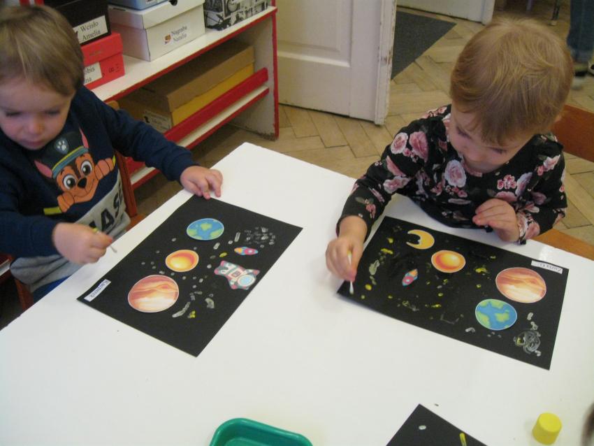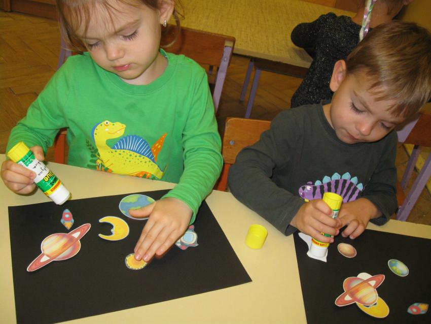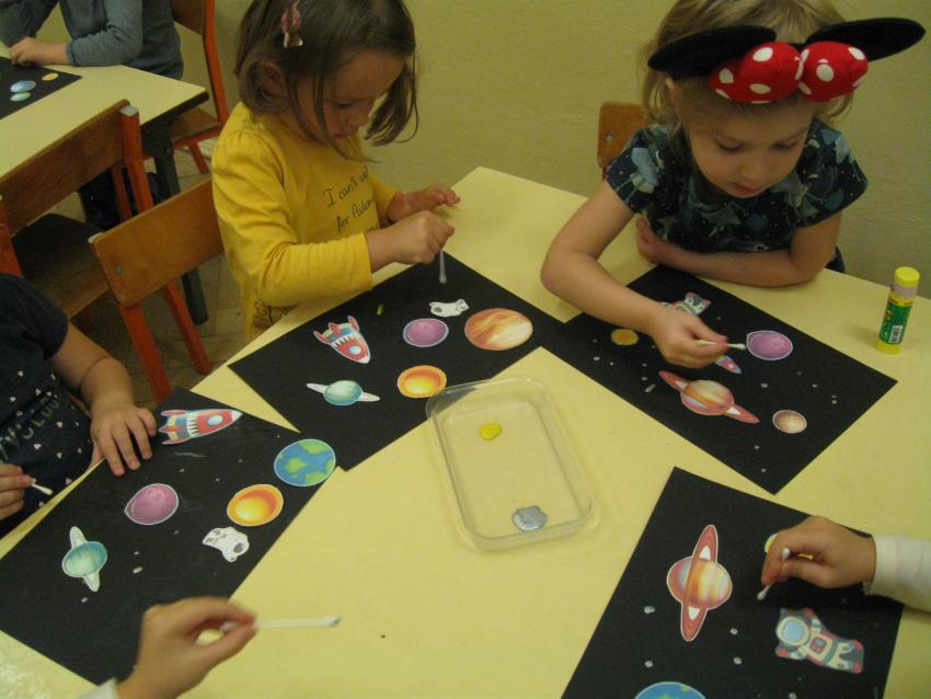 Celem organizacji tego przecięwzięcia w naszym przedszkolu było zainteresowanie dzieci tematyką kosmosu poprzez realizację różnych zadań i zajęć, m.in. zajęcia praktyczne -prace