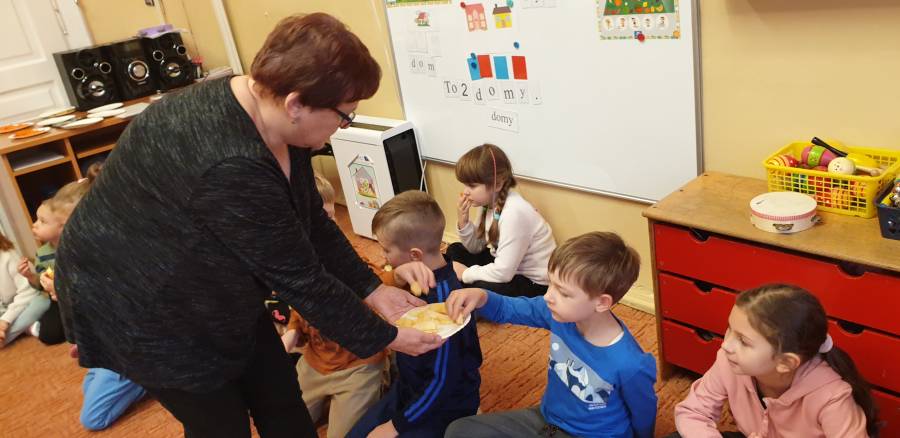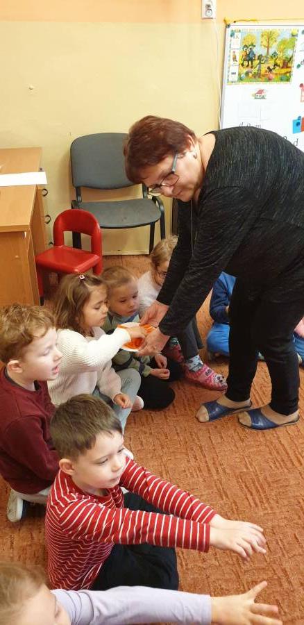 Europejski Dzień Zdrowego Jedzenia i Gotowania Od 2007 roku kraje europejskie obchodzą Dzień Zdrowego Jedzenia i Gotowania Celem święta jest promowanie zdrowego jedzenia wśród najmłodszych (i nie tylko), dobrych nawyków żywieniowych, spożywania regularnie posiłków, informowanie o konsekwencjach złej diety. Większość stylów życia ma swoje korzenie w dzieciństwie. Dzieci które wiedzą jak ważne jest zdrowe odżywianie i które nauczą się dokonywać właściwych wyborów żywieniowych, będą bardziej skłonne do prowadzenia zrównoważonego stylu życia jako dorośli. Podczas zajęć dzieci m.in. utrwalały i przyswajały sobie wiedzę dotyczącą zdrowego stylu życia. Wspólnie i indywidualnie układały piramidę zdrowego żywienia, wskazywały produkty żywnościowe te które są dobre dla zdrowia, oraz te których powinniśmy unikać. Podsumowaniem zajęć była degustacja ? ?zdrowa przekąska? marchewka i jabłka.