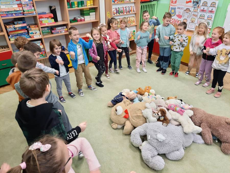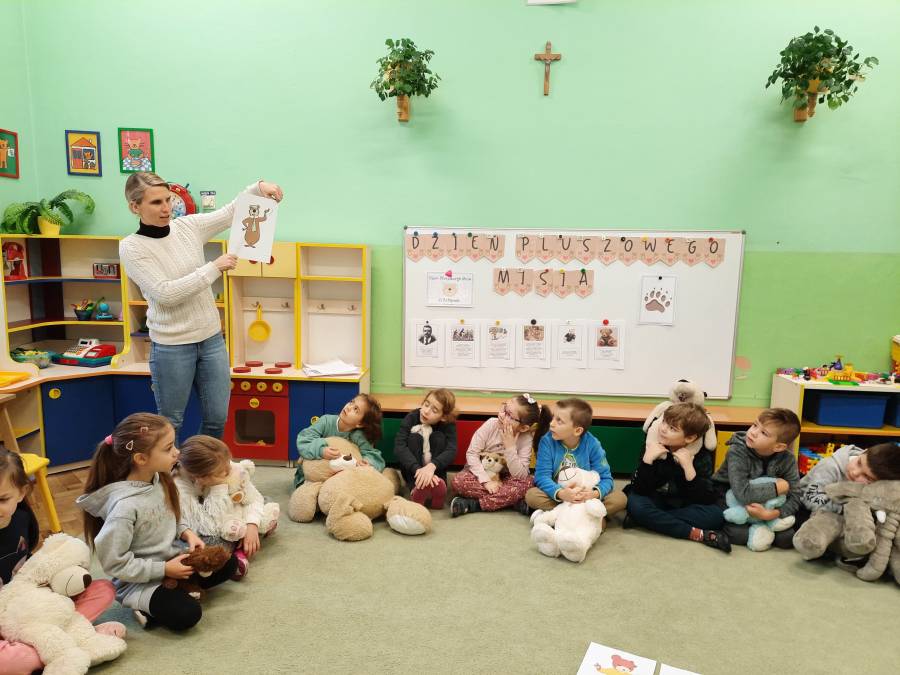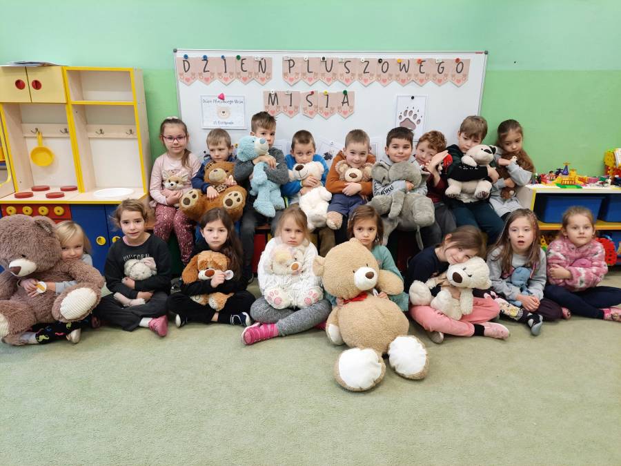 Światowy Dzień Pluszowego Misia. 25 listopada obchodzony jest Światowy Dzień Pluszowego Misia. Ta zabawka kojarzy się od razu z przyjacielem dzieciństwa. Światowy Dzień Pluszowego Misia ustanowiony został w 2002 roku w 100 rocznicę powstania zabawki. Przedszkolaki ze wszystkich grup uczestniczyły w obchodach tego święta. Każde dziecko przyszło do przedszkola ze swoim przyjacielem ? misiem. Dla dzieci przygotowano wiele atrakcji: przedszkolaki poznały historię święta, oglądały bajkę pt. Karolek i Dzień pluszowego misia , bawiły się przy piosenkach były zabawy ruchowe, plastyczne, konkursy, quizy, zgadywanki, misiowe tańce. Ten dzień w przedszkolu pełen był uśmiechu, radości oraz wspólnej zabawy. Mamy nadzieję, że to wielkie misiowe przyjęcie zostanie w naszych wspomnieniach na długi czas.