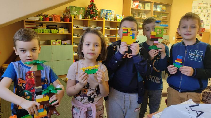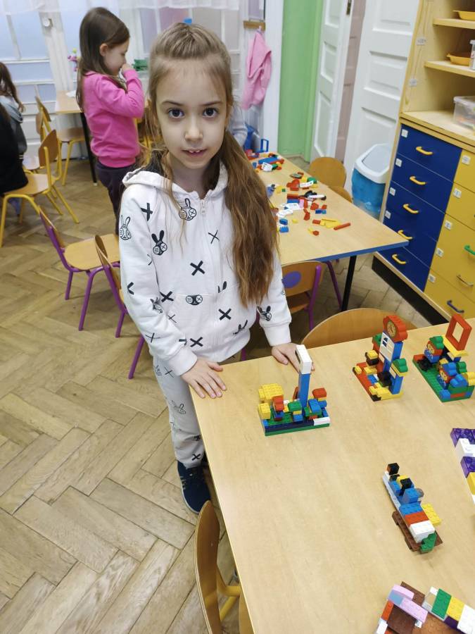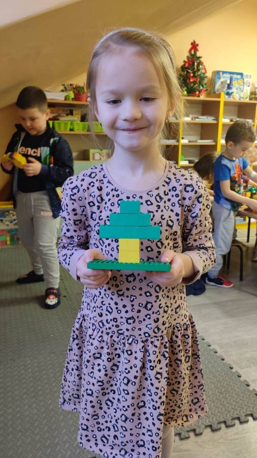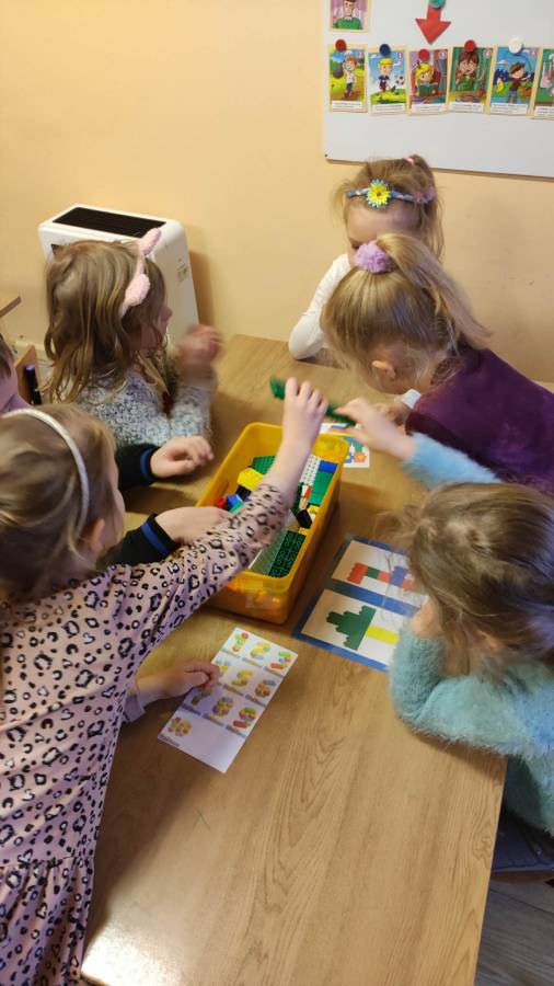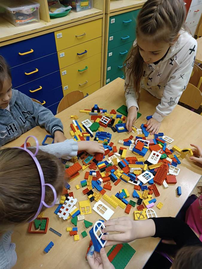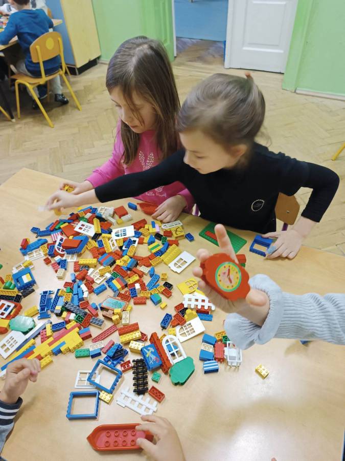 W tym tygodniu obchodzimy Międzynarodowy Dzień LEGO. Klocki LEGO są jedną z ulubionych zabawek dzieci.Z tej okazji poznały historię twórcy najsławniejszych klocków na świecie oraz dowiedziały się, że nazwa Lego pochodzi od słów LEg GOdt?, co oznacza ?baw się dobrze?. Układanie klocków pobudza kreatywność i wyobraźnię każdego malucha. Dziecko może wymyślać swoje własne budowle. Budując według określonego wzoru, uczy się z kolei cierpliwości, trenuje koncentrację i rozwiązuje problemy, a także rozwija wyobraźnię przestrzenną. Klocki dla dzieci rozwijają ich małą motorykę, ćwiczą koordynację ręka-oko. Są także niezrównane w trakcie nauki kolorów, liczenia, rozpoznawania kształtów, wprowadzania pojęć, takich jak ?duży?, ?mały?.