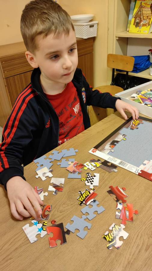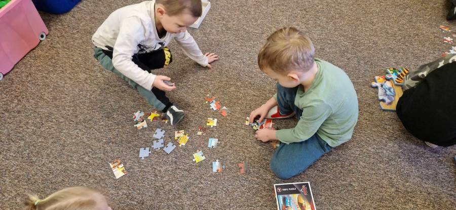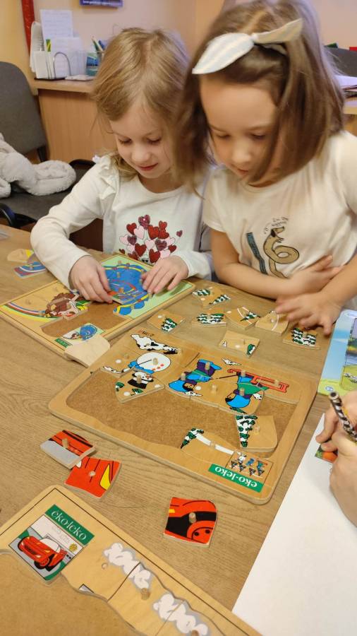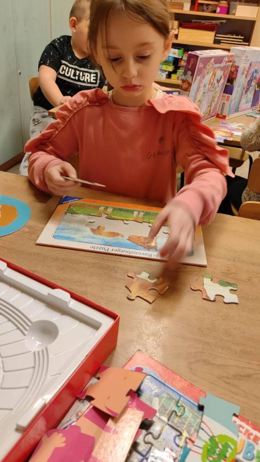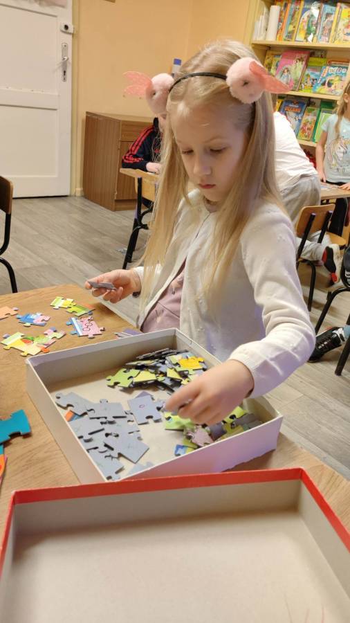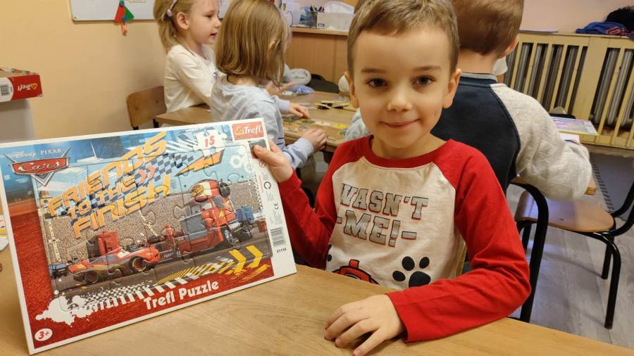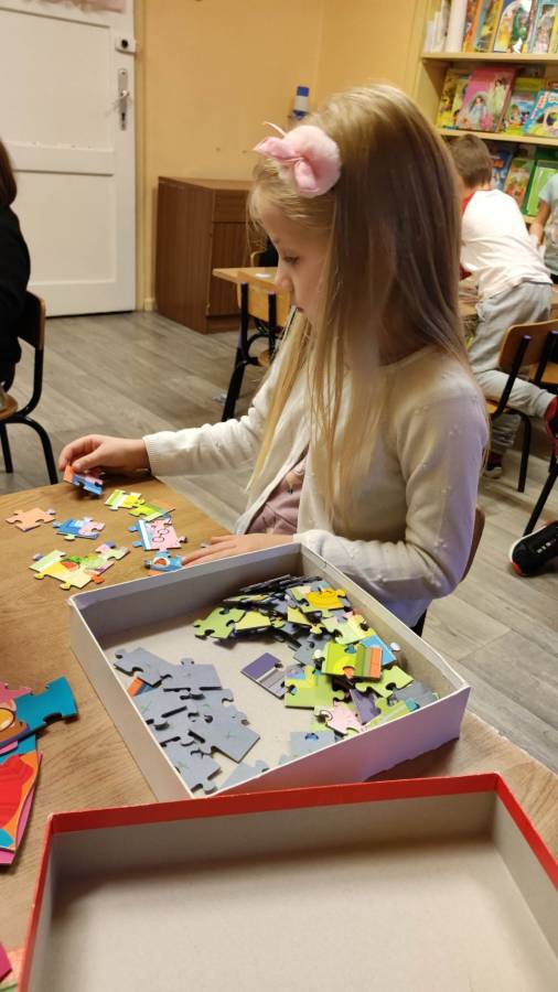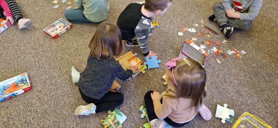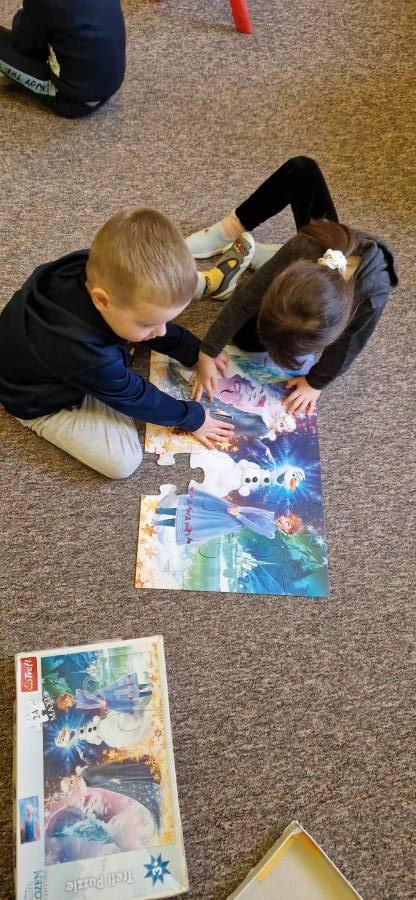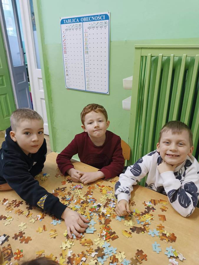 26.01.2023r obchodziliśmy Międzynarodowy Dzień Puzzli. Jak wiadomo, układanie puzzli to świetna zabawa, która posiada walory edukacyjne. To znakomity trening pamięci i koncentracji, który dodatkowo uczy rozpoznawania kształtów oraz logicznego myślenia. Puzzle rozwijają też wiarę we własne możliwości, ćwiczą sprawność manualną dłoni, wytrwałość i cierpliwość, są świetną porcją zabawy i nauki. Zabawa puzzlami od najmłodszych lat sprawia, że dziecko rozwija tak zwaną zdolność analizy i syntezy wzrokowej, czyli rozkładania całości na poszczególne elementy i ponownego składania ich w całość. Ponadto stymulują one rozwój mózgu oraz ćwiczą spostrzegawczość.