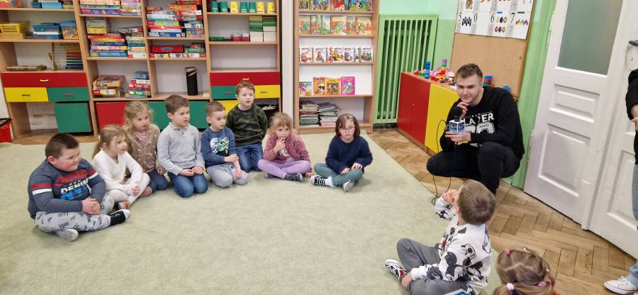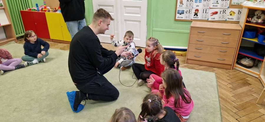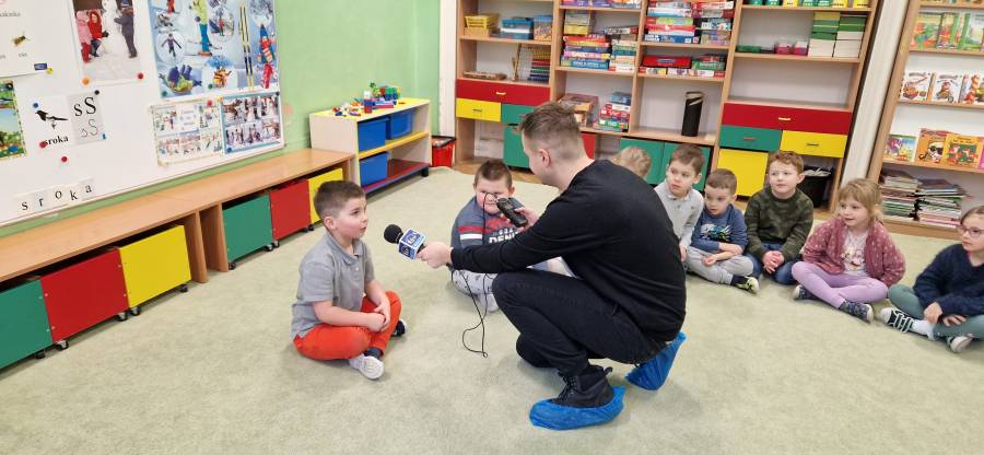 Nasze przedszkole realizuje Narodowy Program Rozwoju Czytelnictwa opracowany przez Radę Ministrów w celu poprawy stanu czytelnictwa w Polsce. W dniu dzisiejszym przedszkole odwiedził dziennikarz Radia RDN , który rozmawiał z dziećmi na temat ulubionych książek, postaci z bajek.