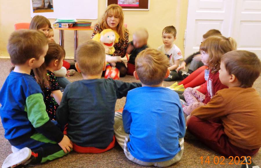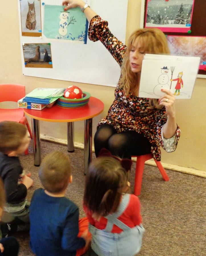 Zajęcia logopedy z dziećmi z oddziału I w ramach innowacji "Poranek logopedyczny".