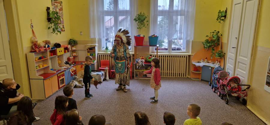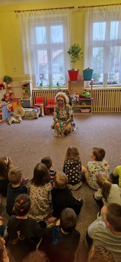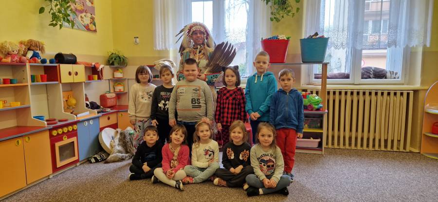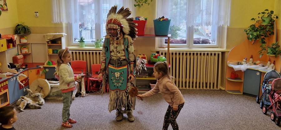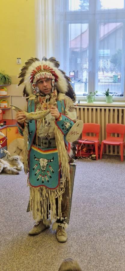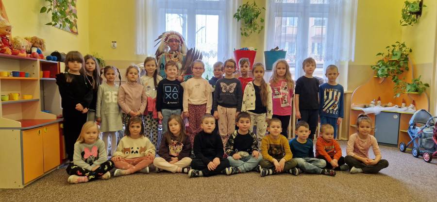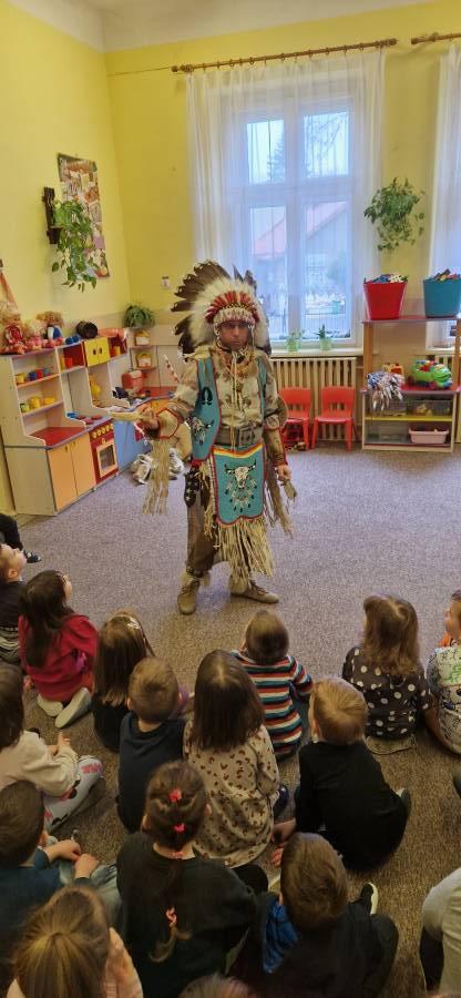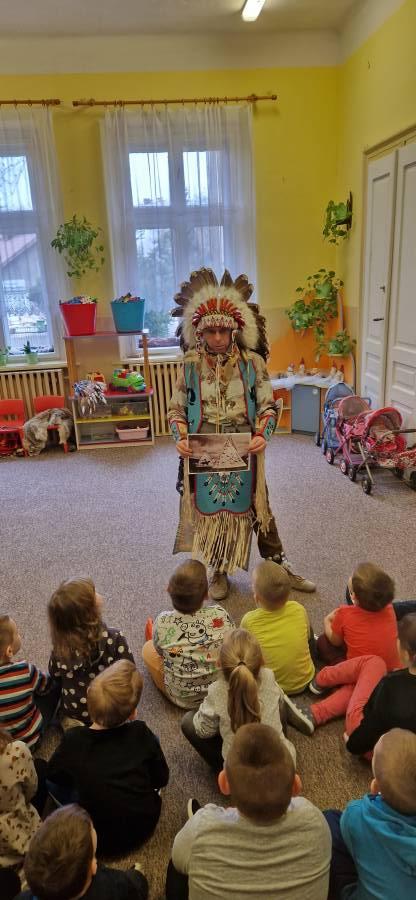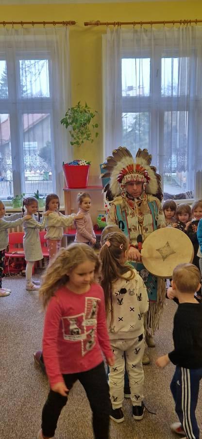 20.02 odbyło się spotkanie z indiańskim wodzem Szarym Wilkiem. Dzięki temu dzieci poznały nową kulturę, dowiedziały się skąd biorą się pióra w pióropuszu Indianina, mogły zagrać w bizonki oraz wyścigi fretek, poznaliśmy plemienny taniec a także historię łapacza snów.