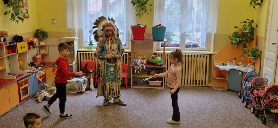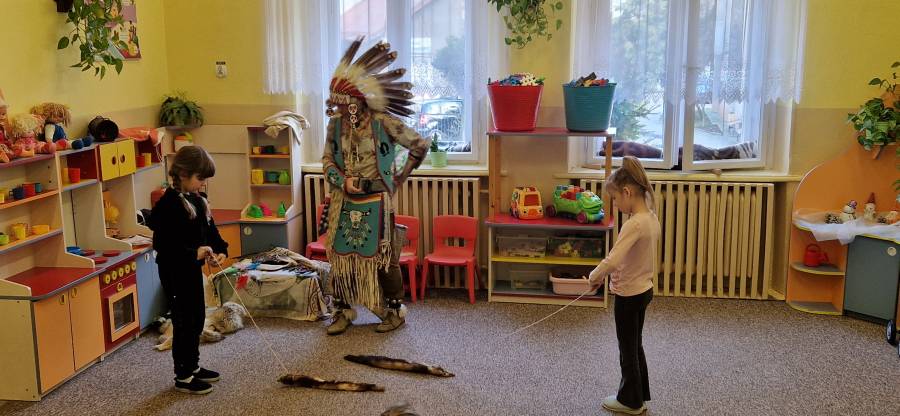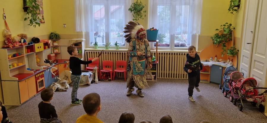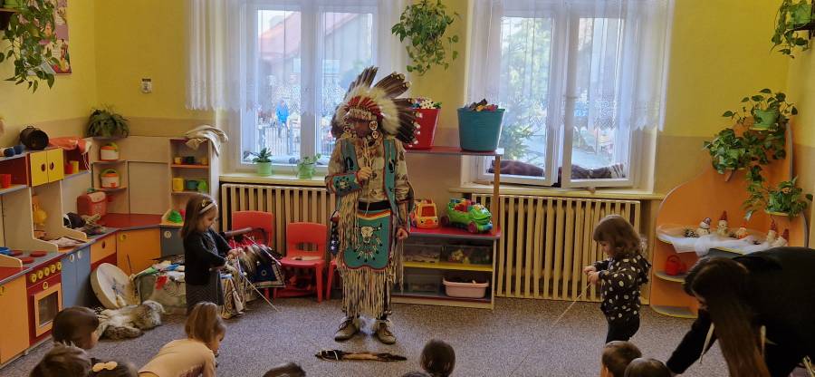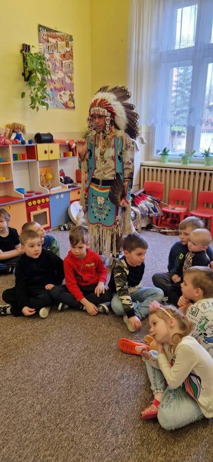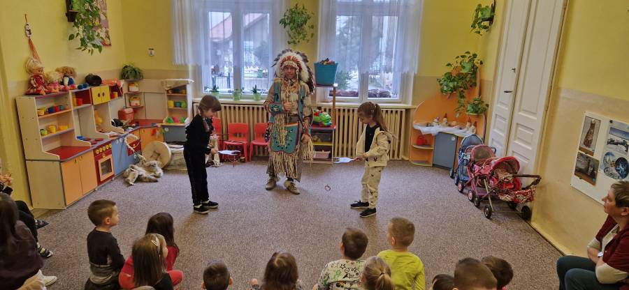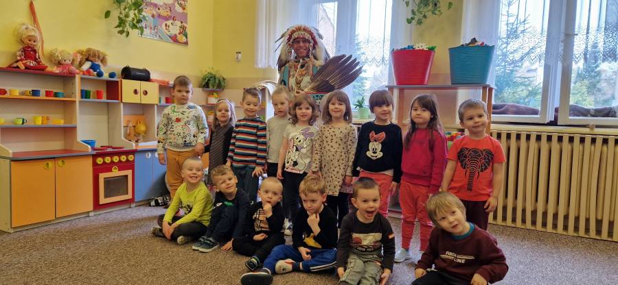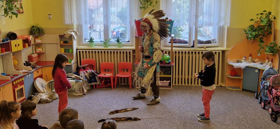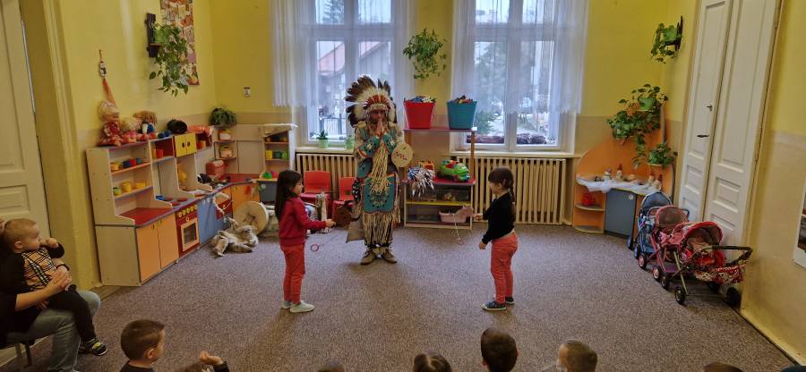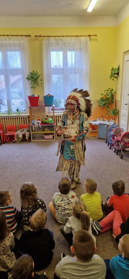 20.02 odbyło się spotkanie z indiańskim wodzem Szarym Wilkiem. Dzięki temu dzieci poznały nową kulturę, dowiedziały się skąd biorą się pióra w pióropuszu Indianina, mogły zagrać w bizonki oraz wyścigi fretek, poznaliśmy plemienny taniec a także historię łapacza snów.