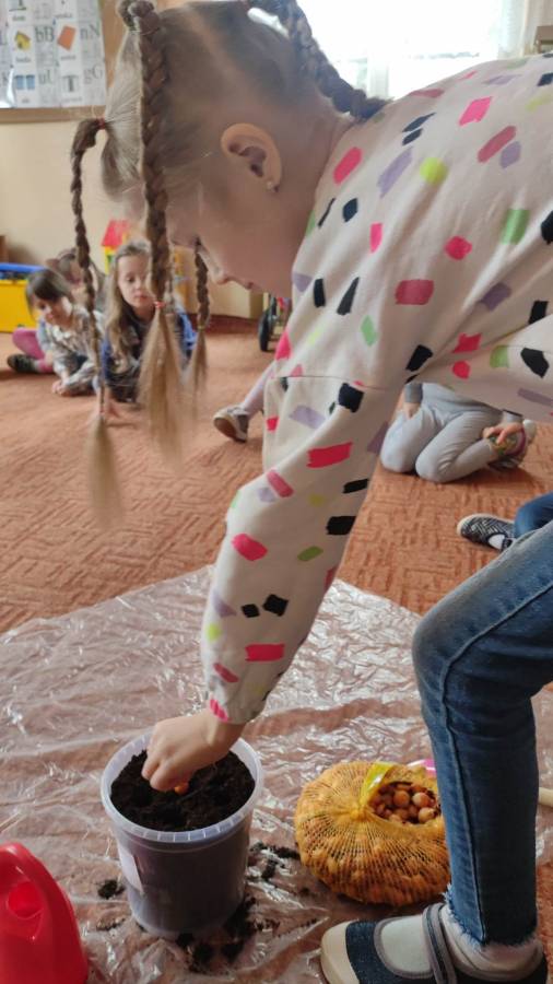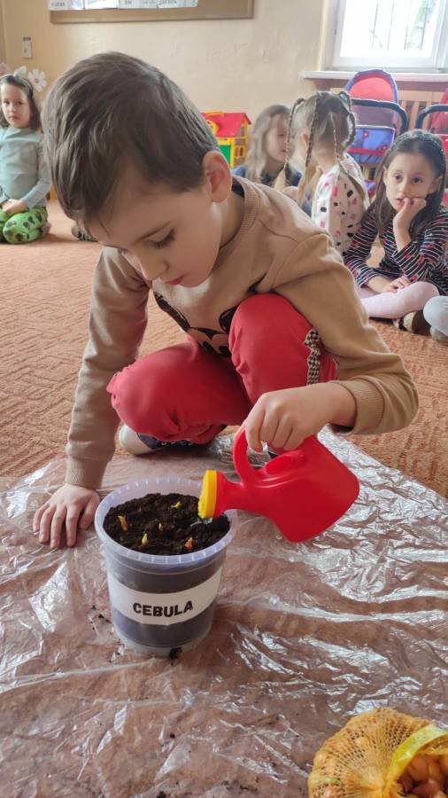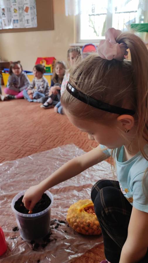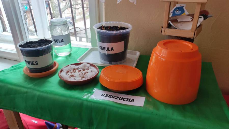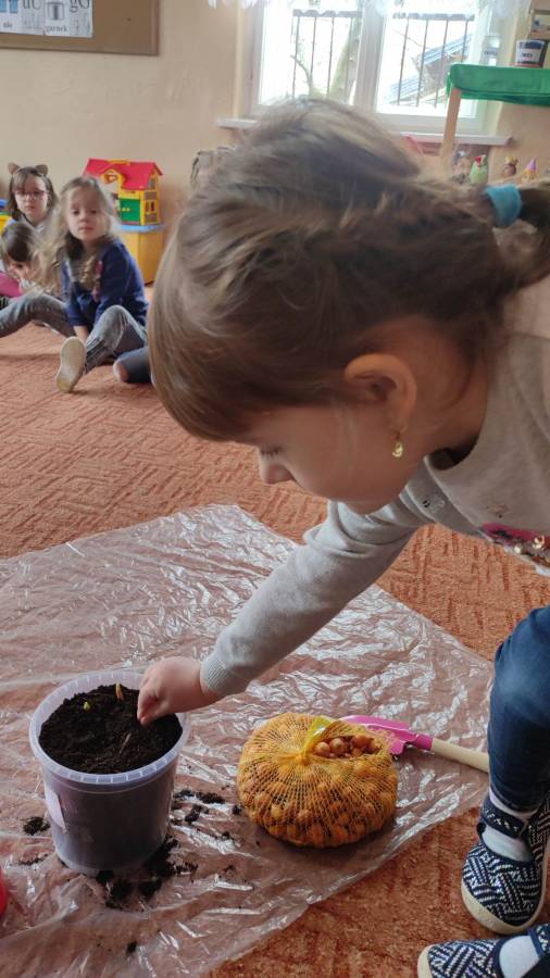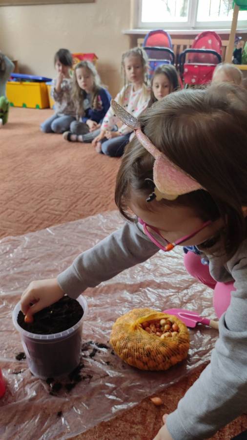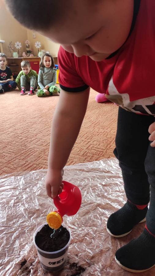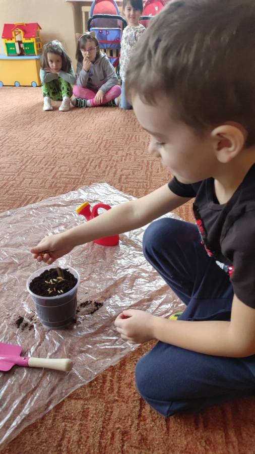 W ramach tematu tygodnia "Jak dbamy o zdrowie na przedwiośniu?" średniaki posadziły cebulę, owies, fasolę i rzeżuchę do naszego kącika przyrodniczego.