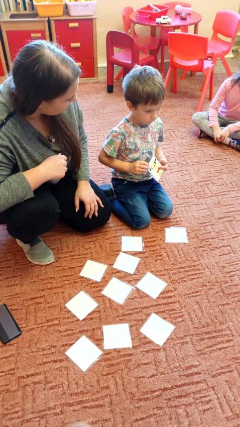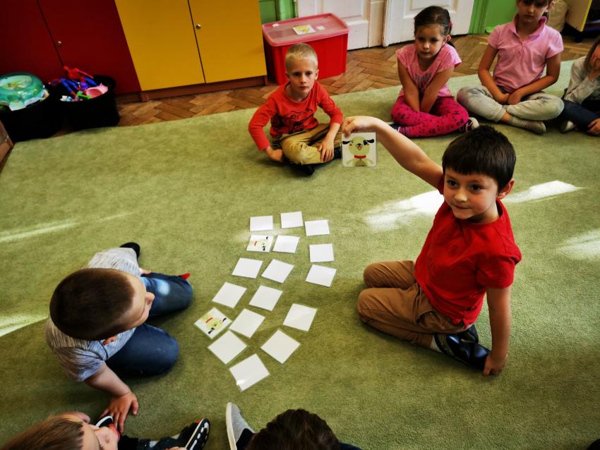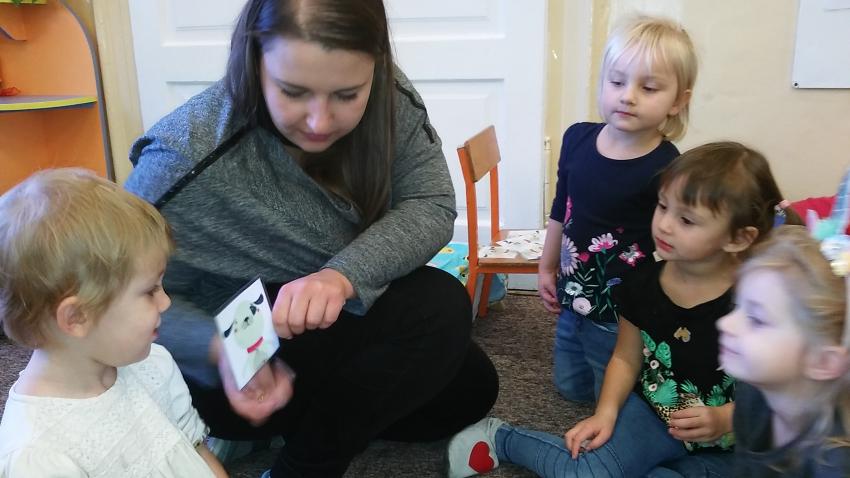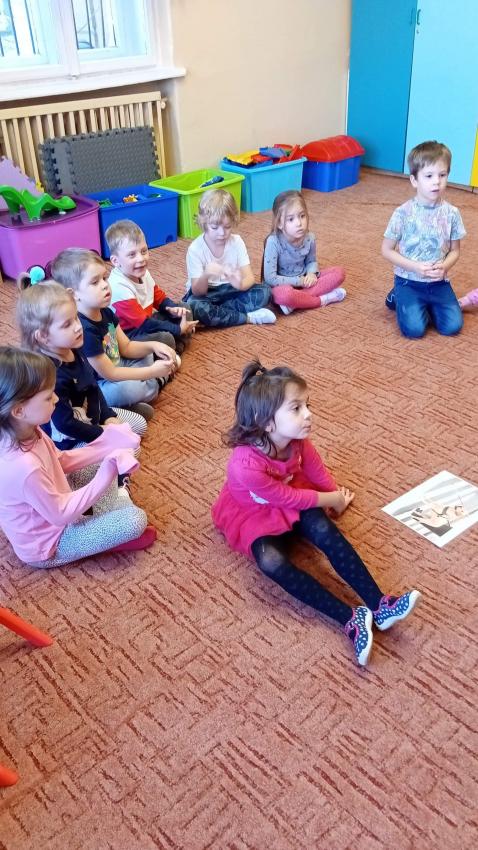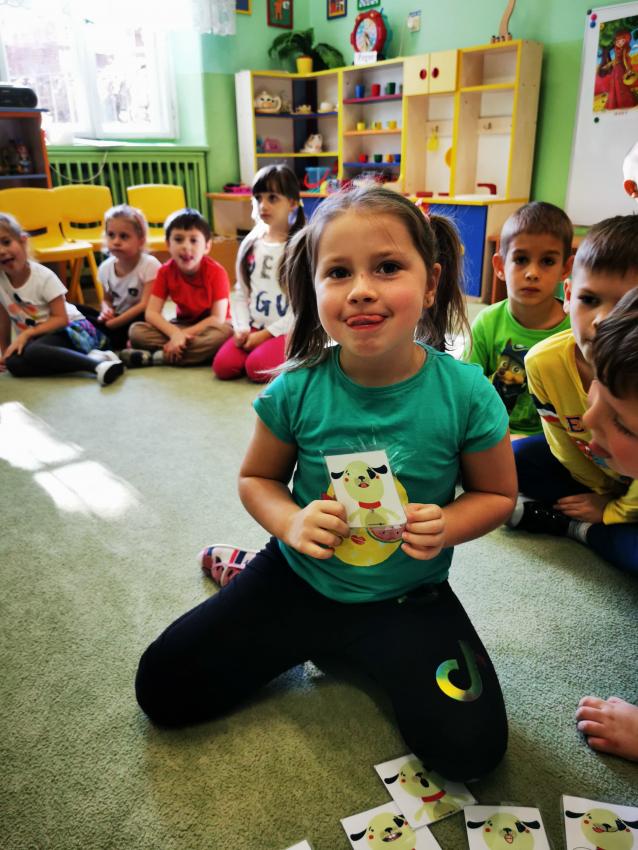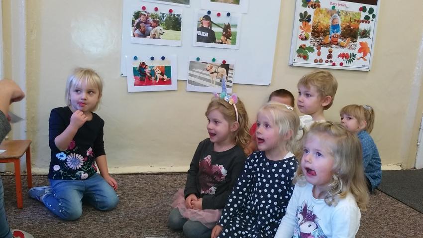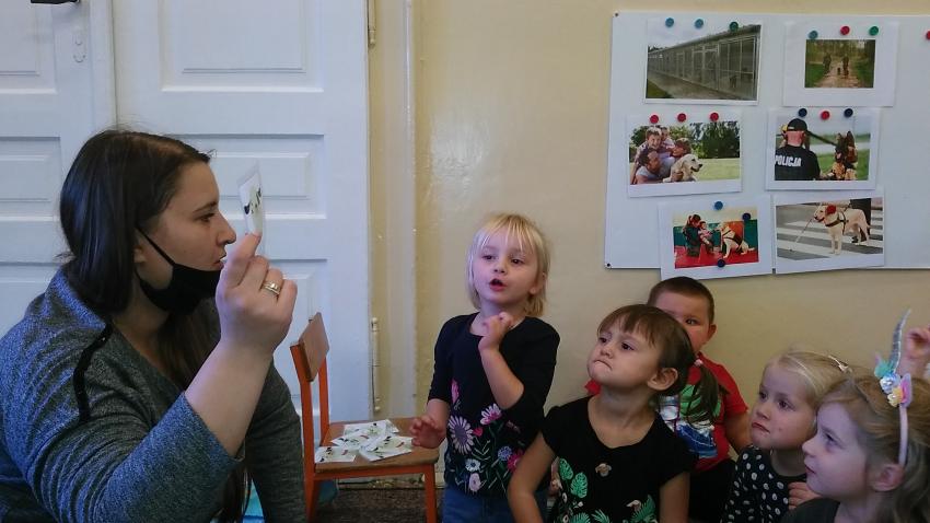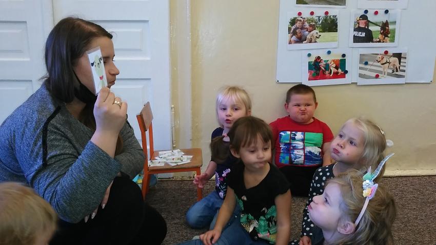 Były też zabawy logopedyczne. Dzieci naśladowały m.in. miny pieska.