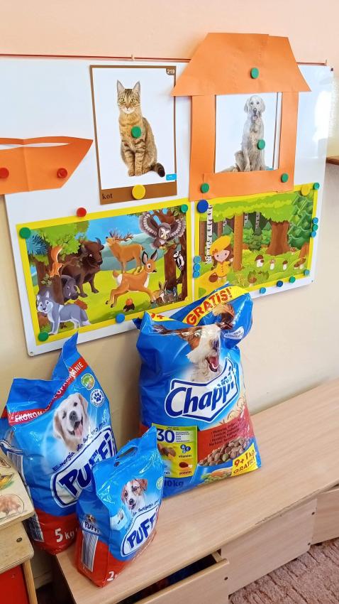 Panie szczególną rolę zwróciły na pomoc zwierzętom znajdującym się w azylach i schroniskach poprzez przynoszenie do przedszkola karmy, która zostanie przekazana do schronisk.