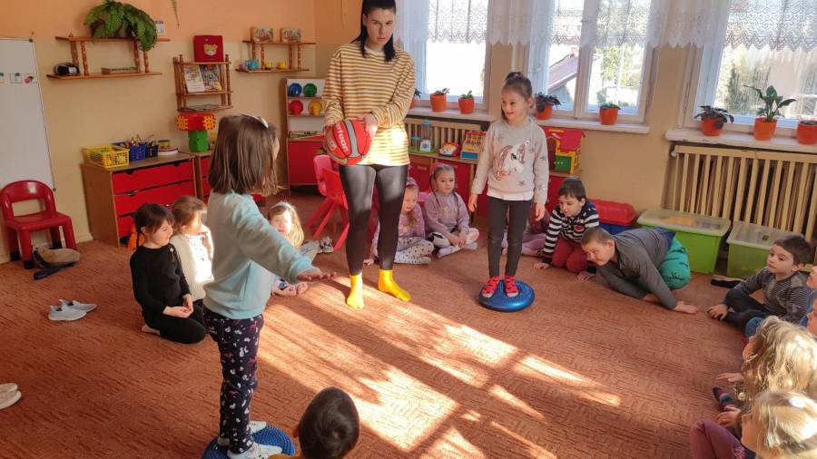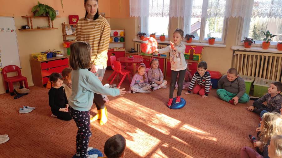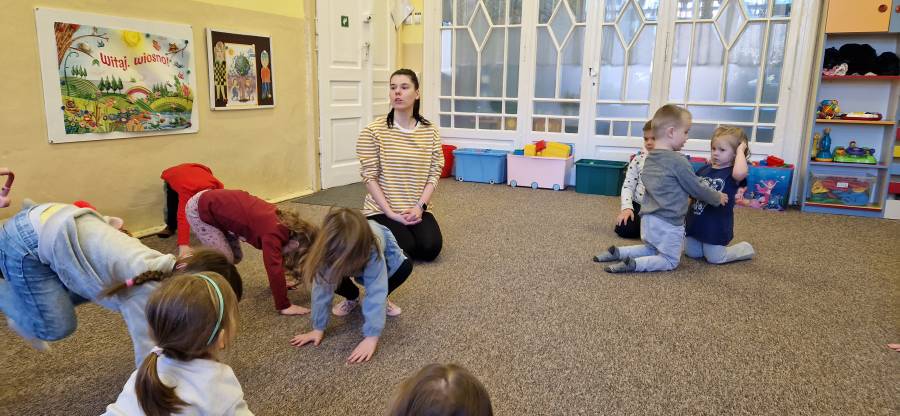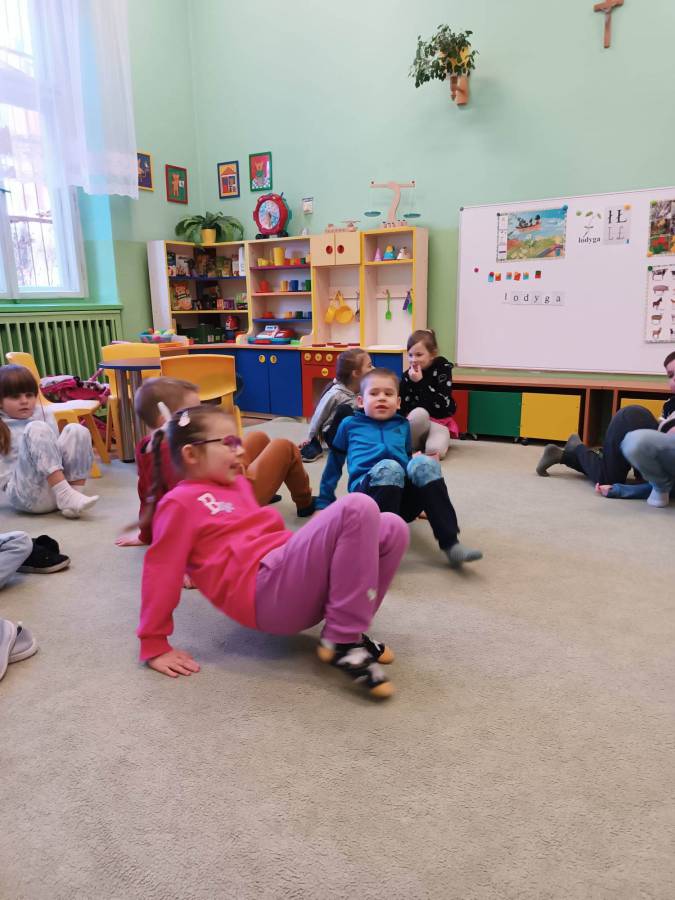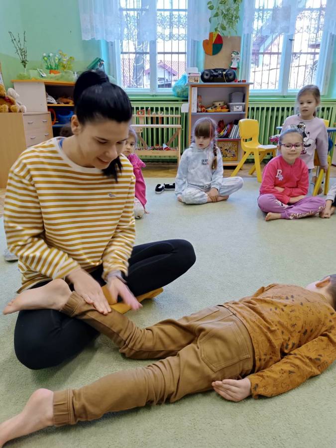 W ramach preorientacji zawodowej w środę 29.03 nasze przedszkole odwiedziła Pani fizjoterapeuta. Dzieci poznały wykonywany przez nią zawód oraz co trzeba zrobić żeby zostać fizjoterapeutą. Dowiedziały się jaka jest prawidłowa postawa ciała, jak powinny prawidłowo siedzieć oraz wykonały kilka ćwiczeń.