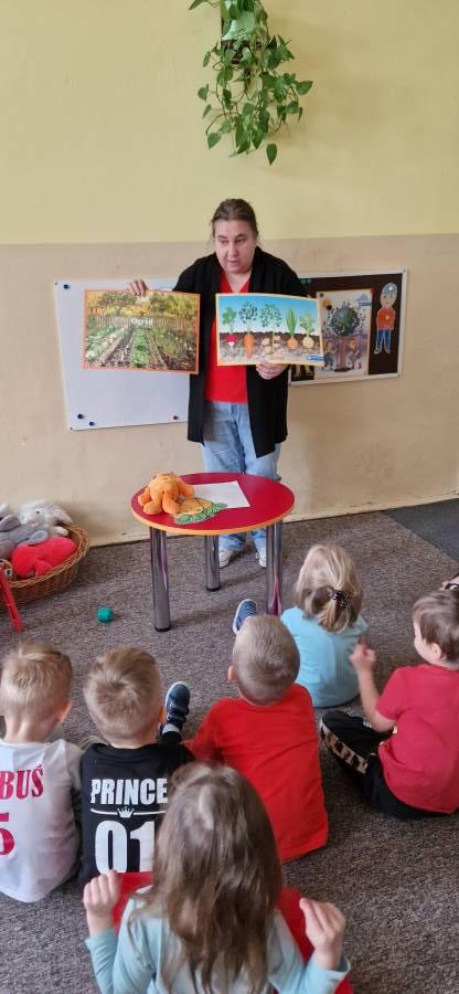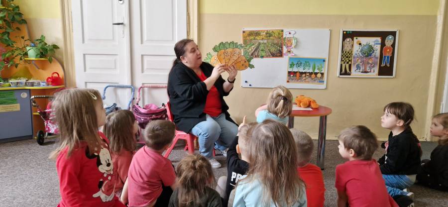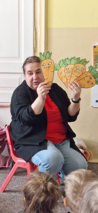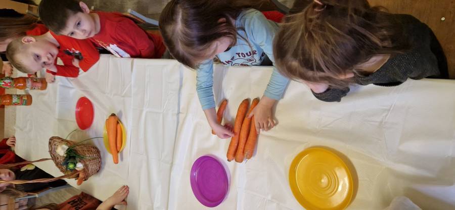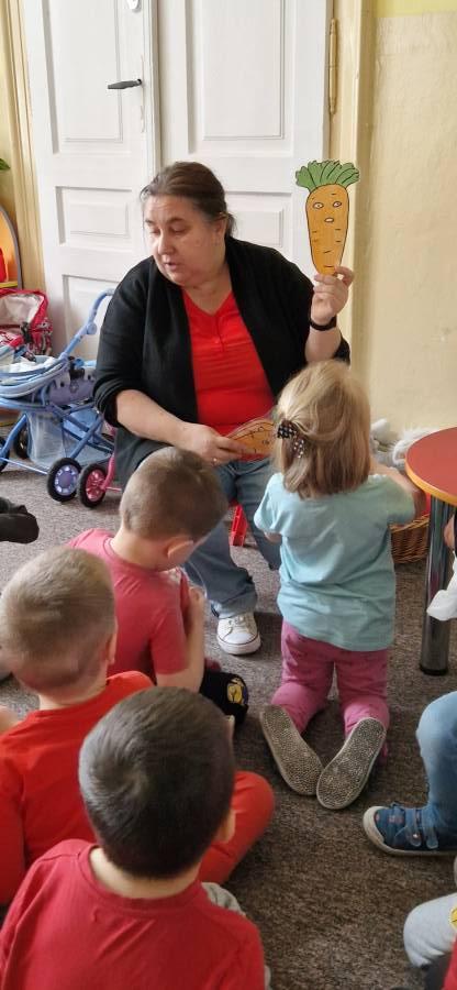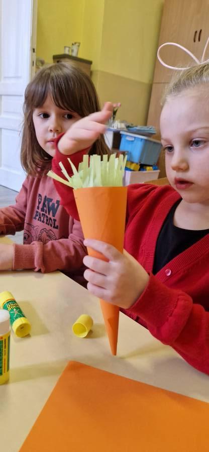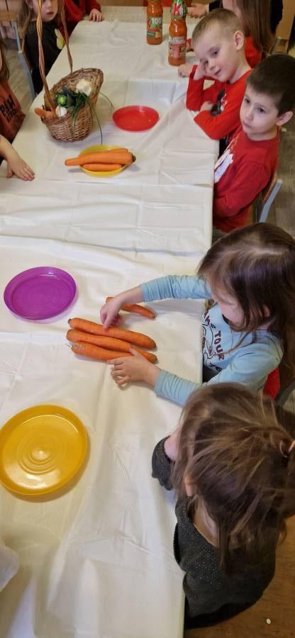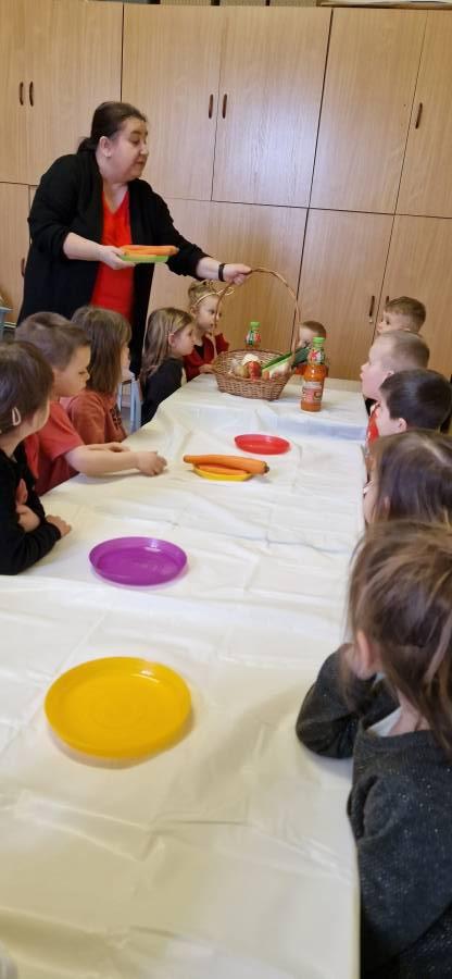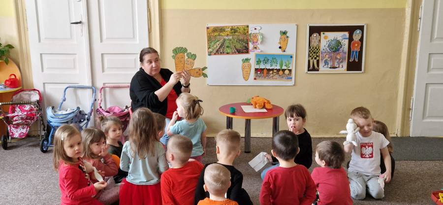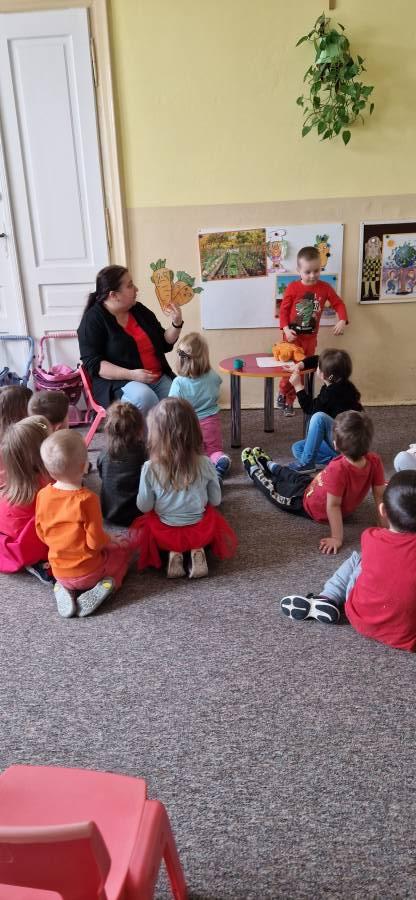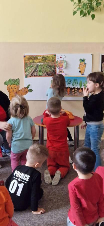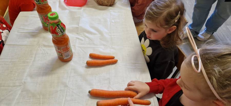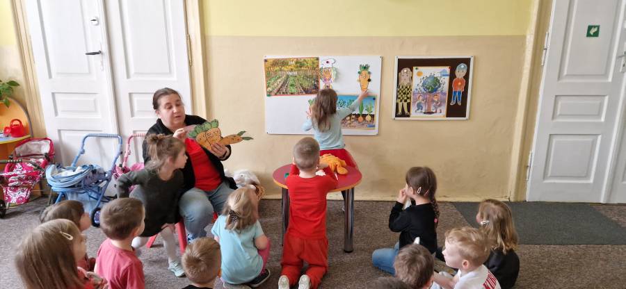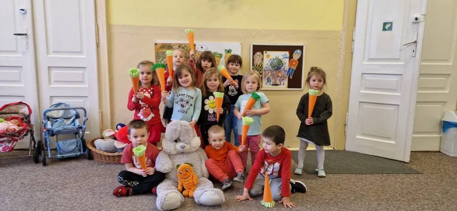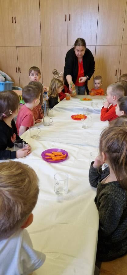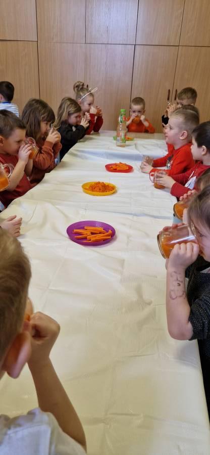 4.04.2023r. W dniu dzisiejszym w oddziale I główną bohaterką była marchewka. Dzieci wraz z Kubusiem oglądały bajkę "Kubuś- Dzień Marchewki" przeliczały, określały wielkość marchewek, uczestniczyły w zabawach muzyczno- ruchowych, degustowały przygotowane przez siebie marchewki, piły pyszny owocowy sok. Wykonaliśmy pracę plastyczne. Głównym celem akcji było promowanie spożywania warzyw.
