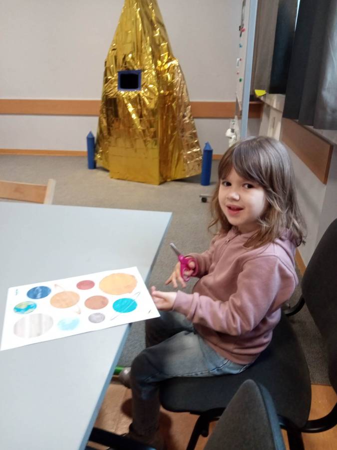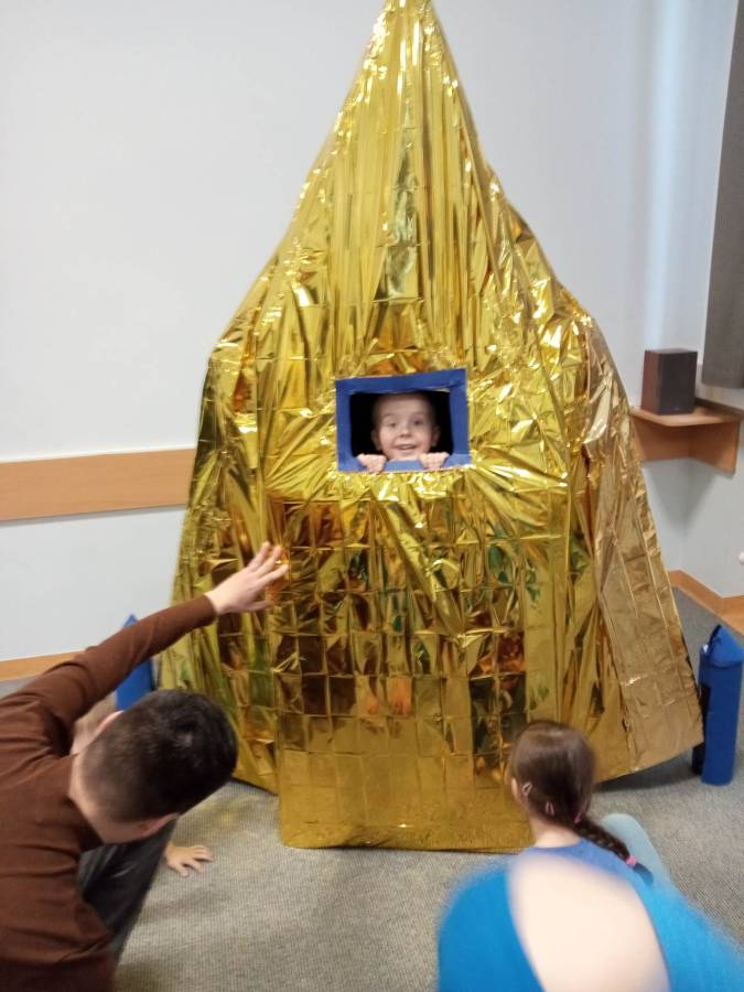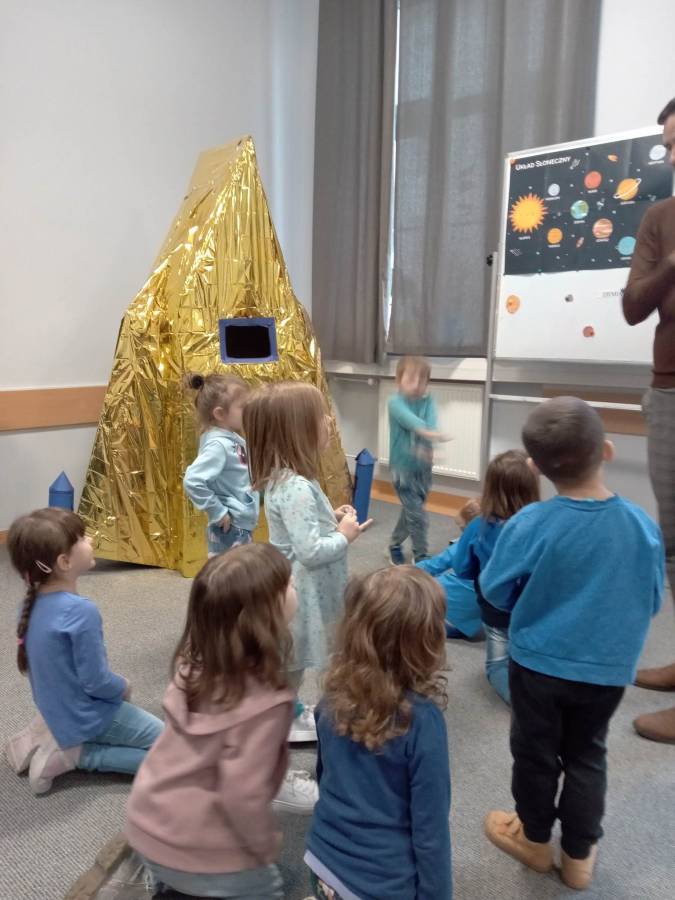 19.04.2023 dzieci z oddziału I były na zajęciach w Bibliotece Pedagogicznej nt. Rakietą w kosmos. Celem zajęć było poznanie wszystkich planet Układu Słonecznego oraz wzbogacenie słownictwa na temat kosmosu i podróży międzyplanetarnych. Dzieci wcieliły się w role kosmonauty i odbyły lot w rakiecie, odwiedzając wszystkie planety.