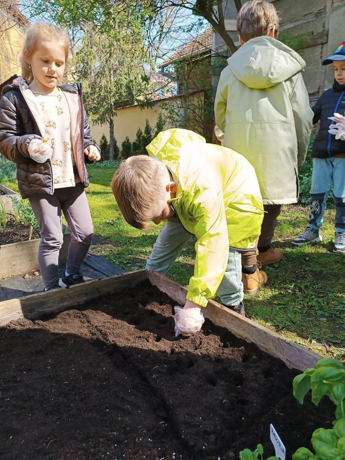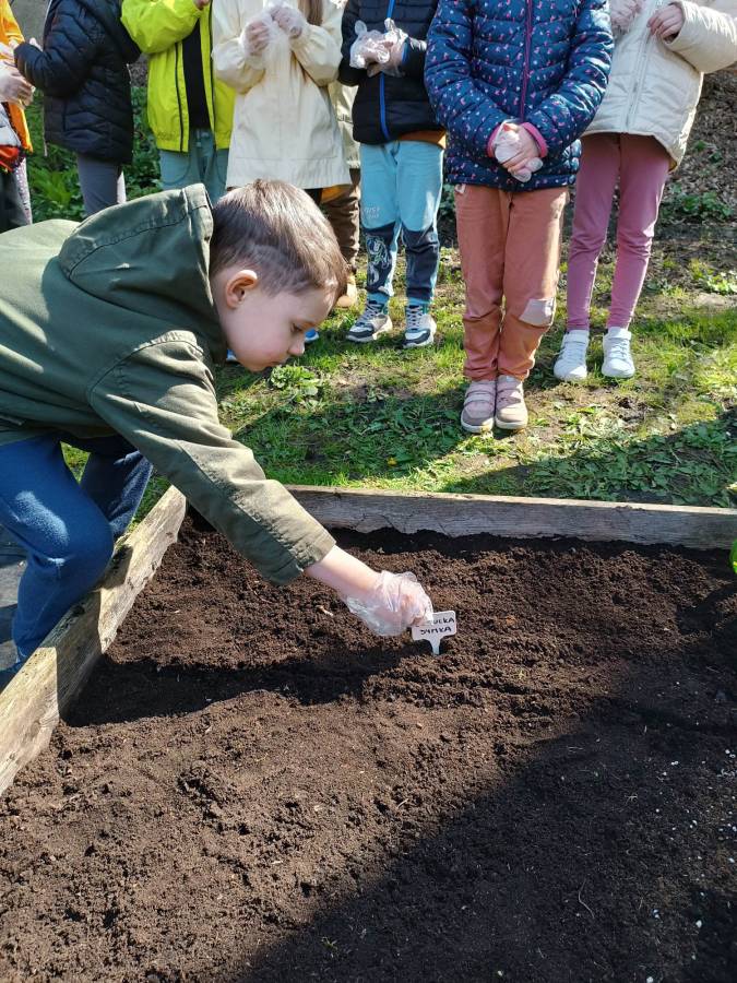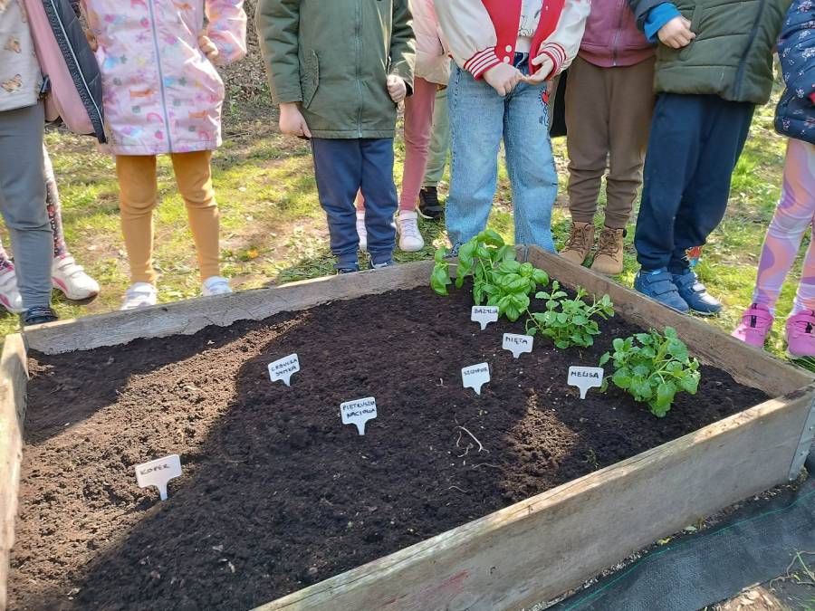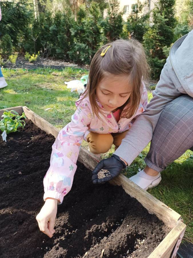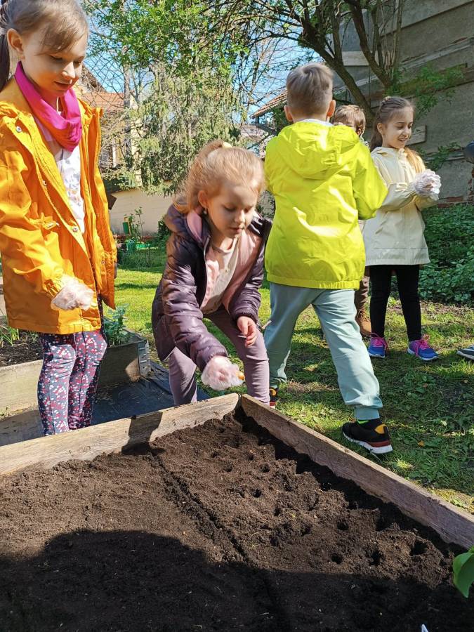 Dzisiaj 21. 04.2023 dzieci z oddziału lll sadziły w ogródku przedszkolnym zioła - bazylię, miętę ,melisę oraz szczypiorek, pietruszkę , koperek, cebulkę.
