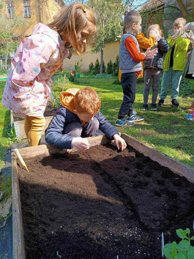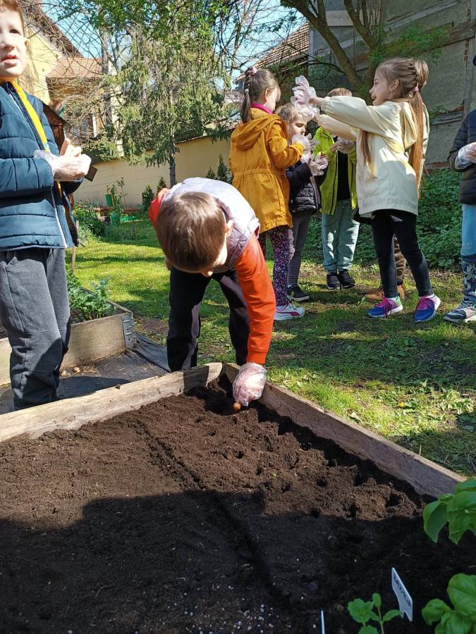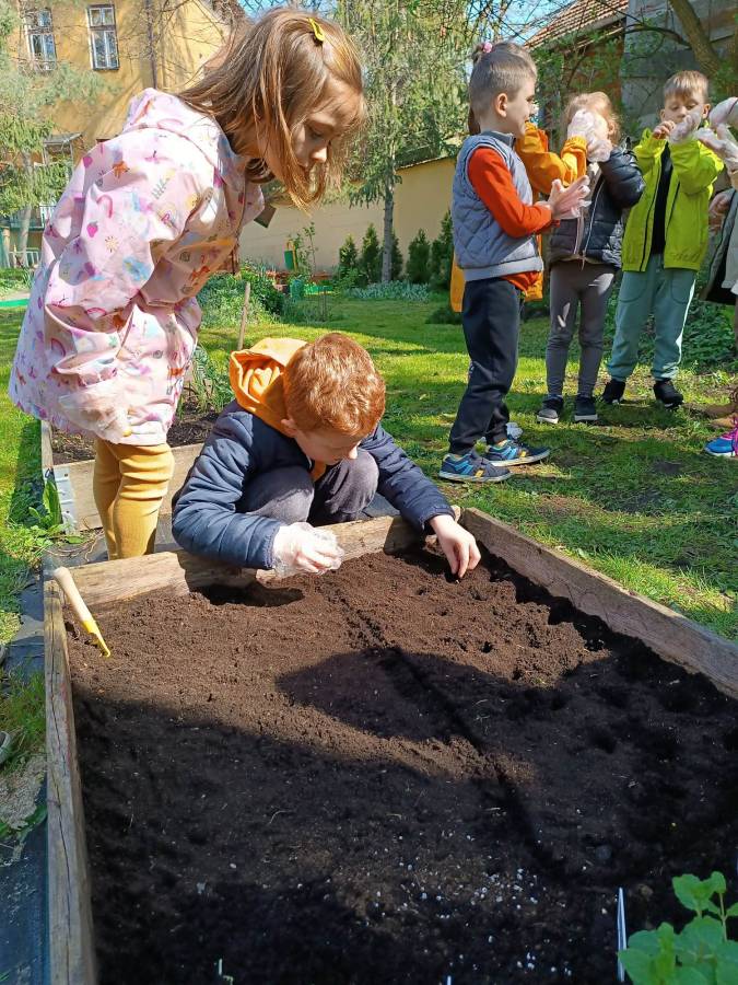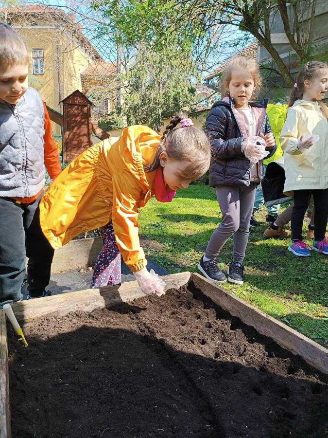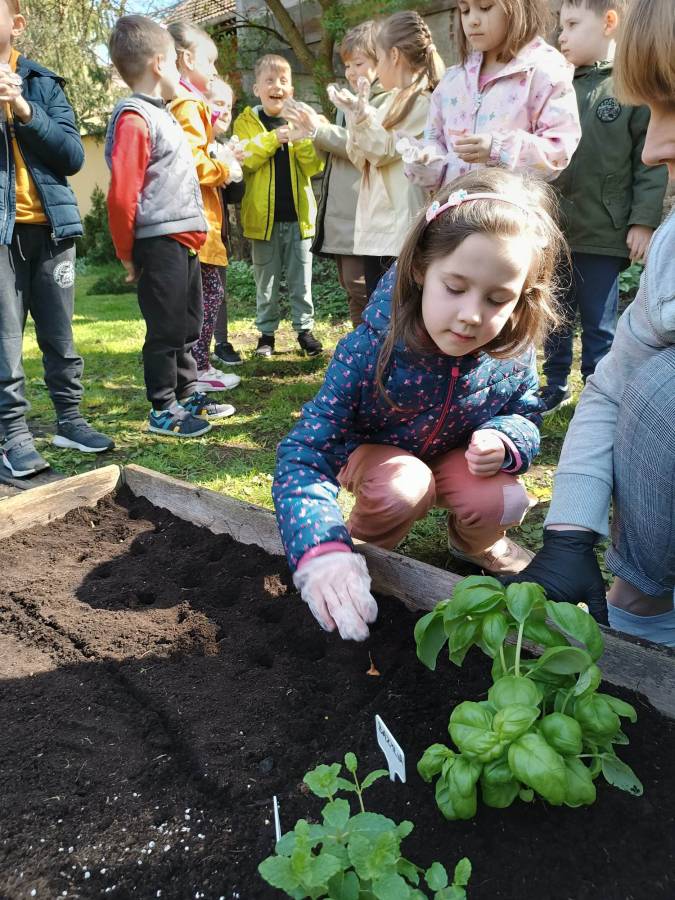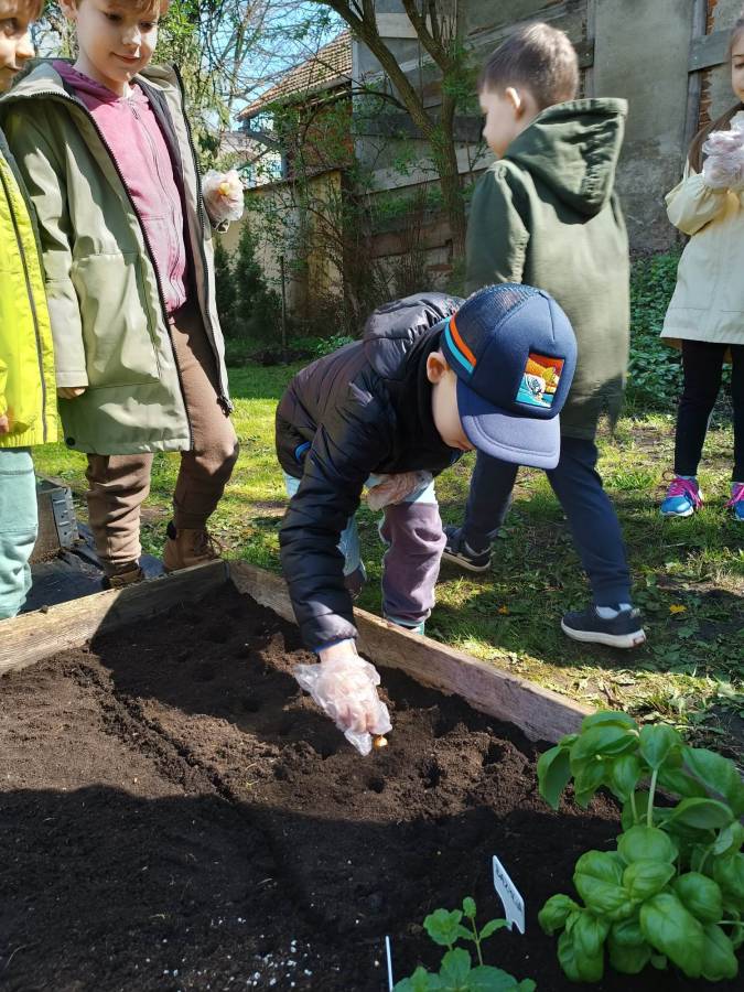 Dzisiaj 21. 04.2023 dzieci z oddziału lll sadziły w ogródku przedszkolnym zioła - bazylię, miętę ,melisę oraz szczypiorek, pietruszkę , koperek, cebulkę.