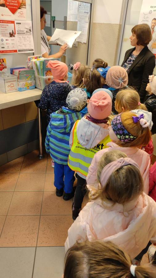 W ramach preorientacji zawodowej nasze przedszkolaki z oddziału II odwiedziły II Urząd Pocztowy w Tarnowie. Dzieci poznały Pana Listonosza, dowiedziały się jaką ciężką pracę wykonuje, zobaczyły jak nadawane są paczki, dostały koperty i znaczki które później mogły zaadresować.