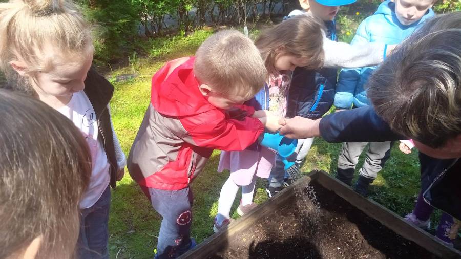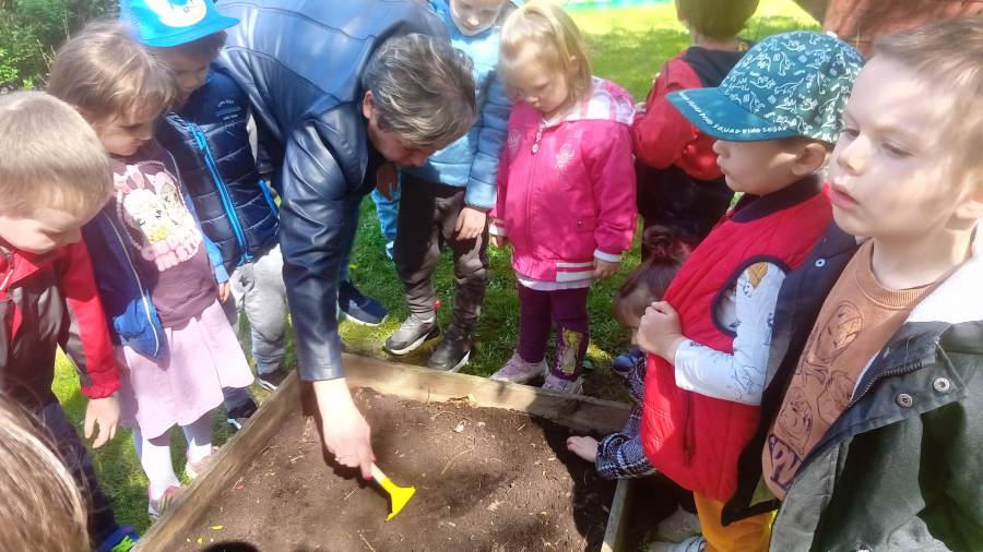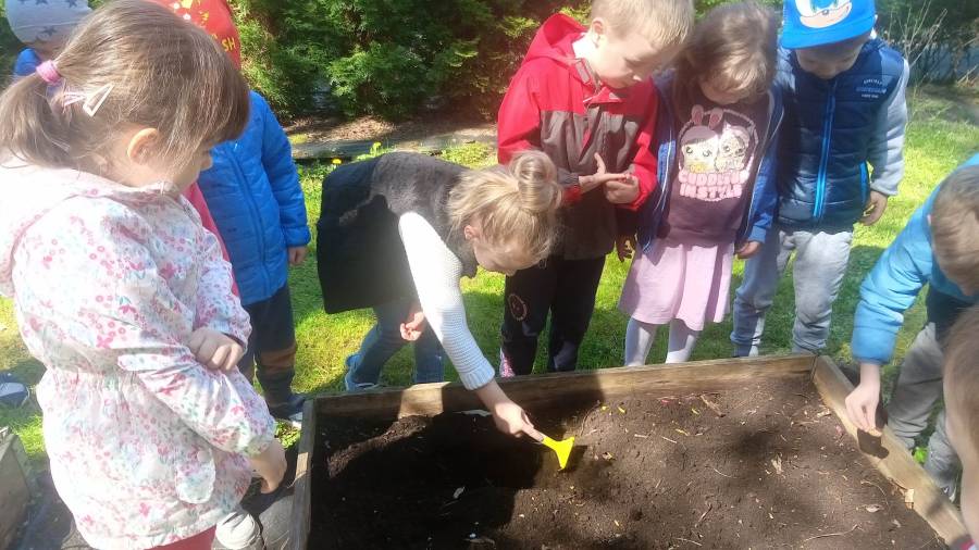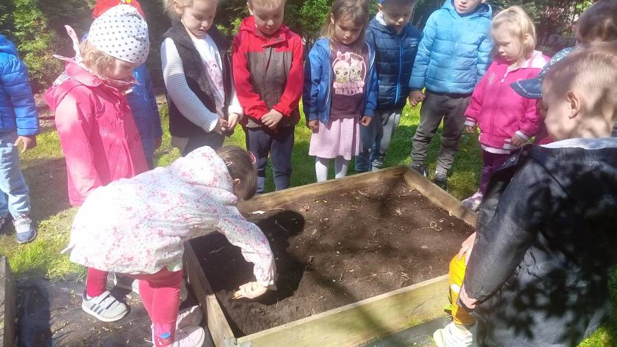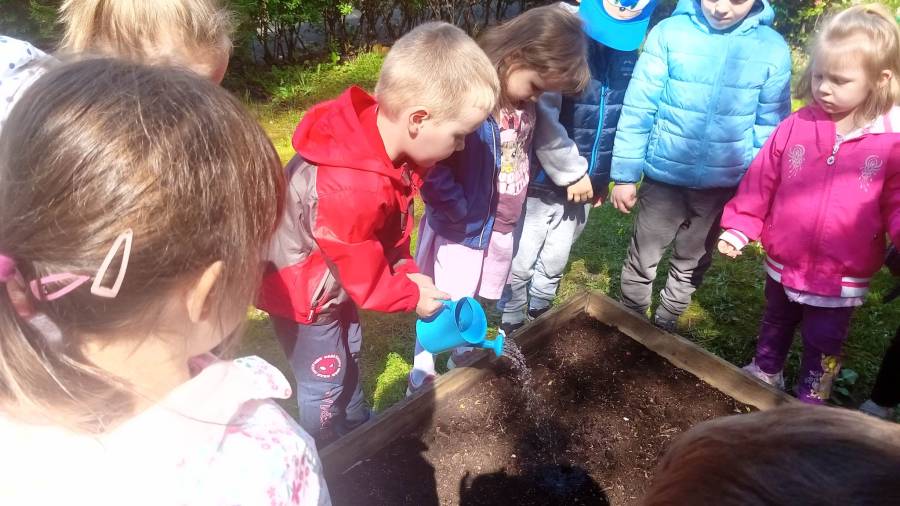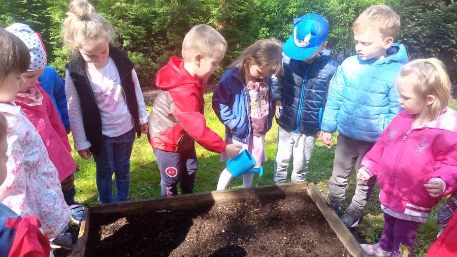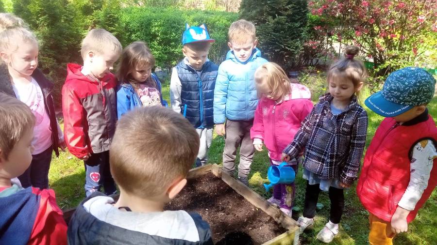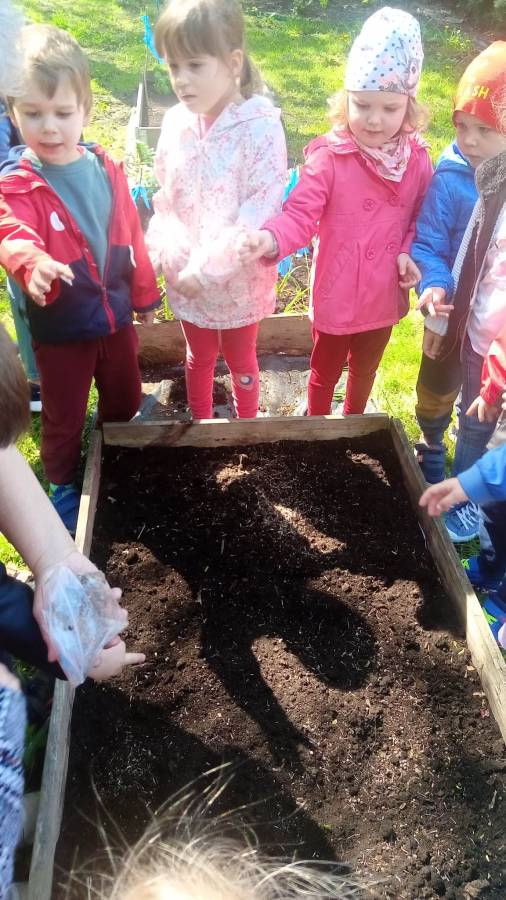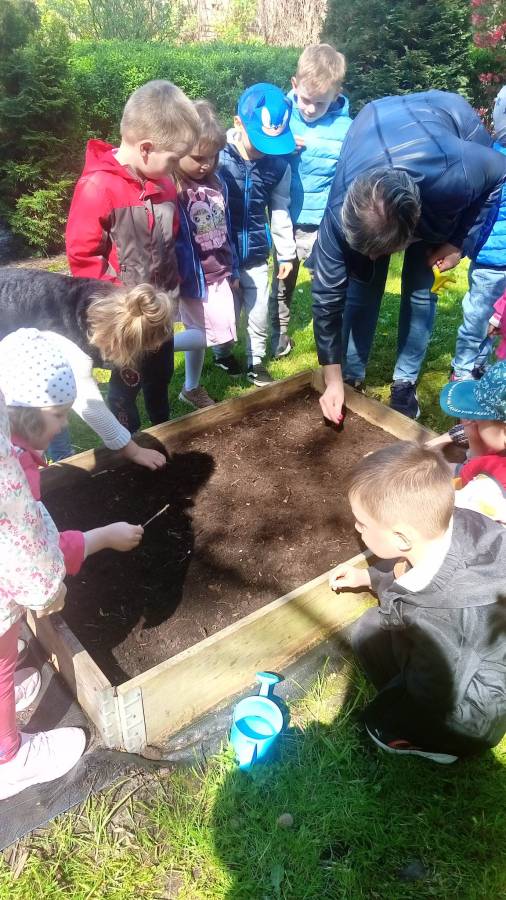 Mali ogrodnicy. Dzieci z oddziału I siały dziś łąkę kwiatową. Łąka to prawdziwa ostoja bioróżnorodności. Zmniejsza zanieczyszczenia powietrza, obniża temperaturę. Mamy nadzieję, że wyrośnie nam piękna łąka kwiatowa. Będziemy ją mogli obserwować jak wzrasta każdego dnia i podziwiać jej piękno.