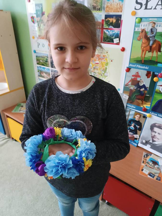 Wykonanie zadania z 7 bloku tematycznego "Zielona Niepodległa" - "Bo najpiękniejsze są polskie kwiaty". Ania wraz z mamą wykonały własnoręcznie wianek na konkurs.