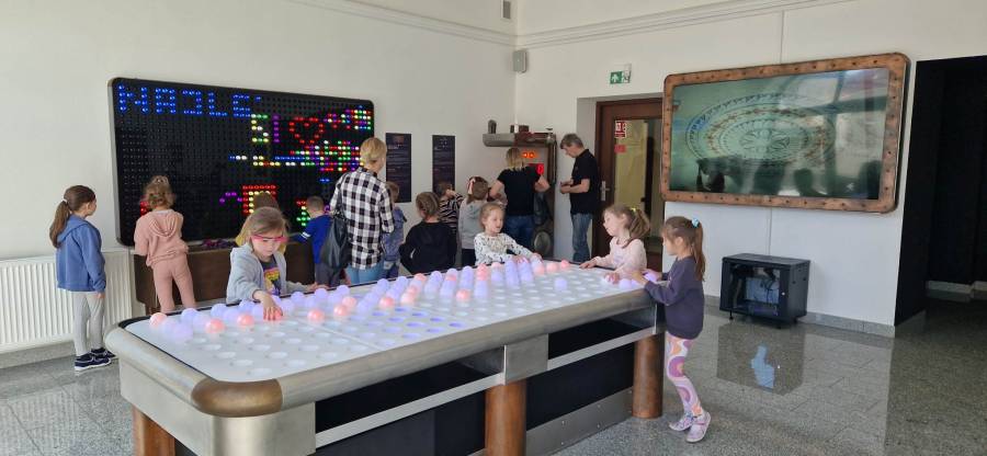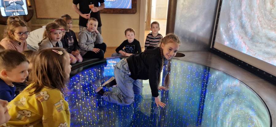 Dnia 10.05.2023r. dzieci z Oddziału III wybrały się do niezwykłego miejsca w Tarnowie- Pasażu Odkryć. Podczas tej wizyty przedszkolaki miały okazję zobaczyć ciekawą ekspozycję naukową oraz obejrzeć seans w planetarium, gdzie poznali wiele tajemnic Wrzechświata. W ramach preorientacji zawodowej dzieci zapoznały się z zawodem astronoma.
