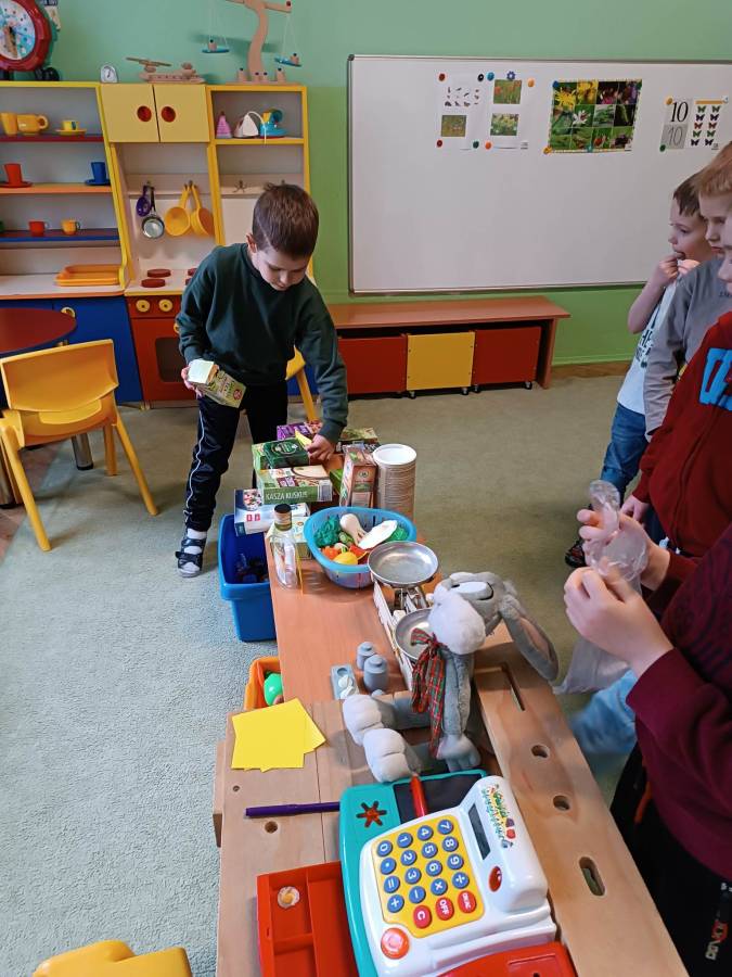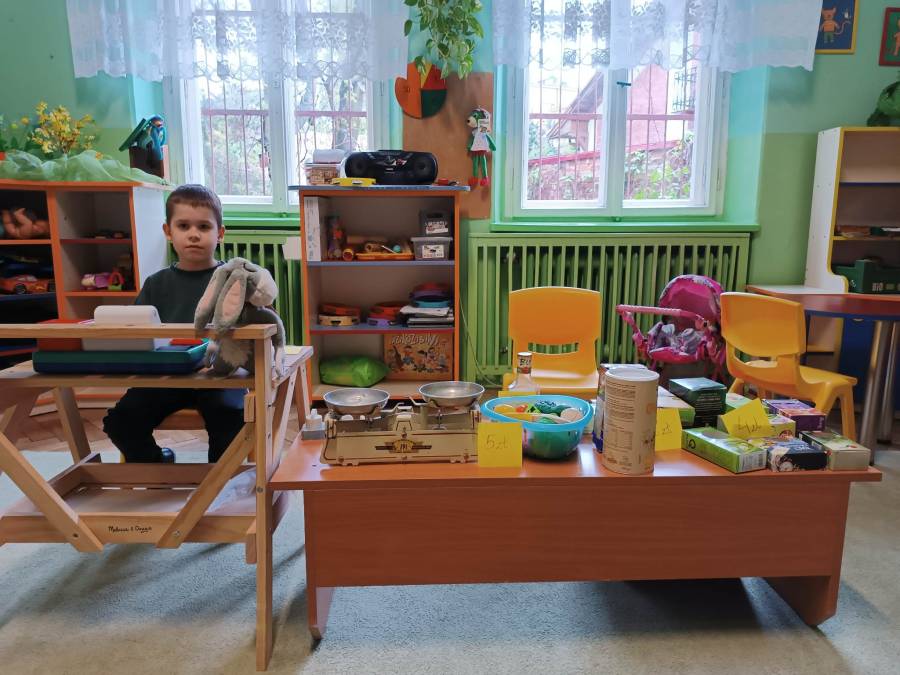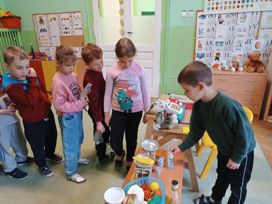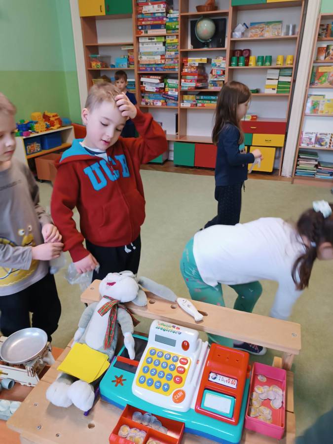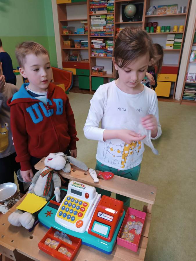 Dzieci z Przedszkola nr 3 w Tarnowie zrealizowały zadania majowe - bawiły się w sklep, robiły zakupy, dokonywały obliczenia pieniężne. Wykonały również grę matematyczną "Rodzinny piknik".