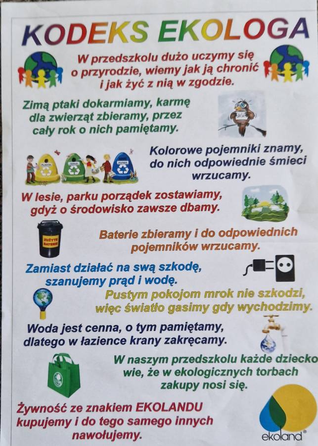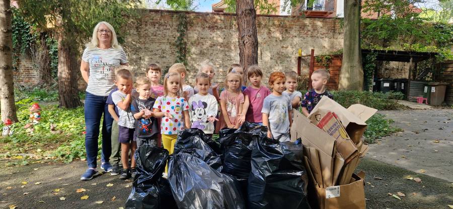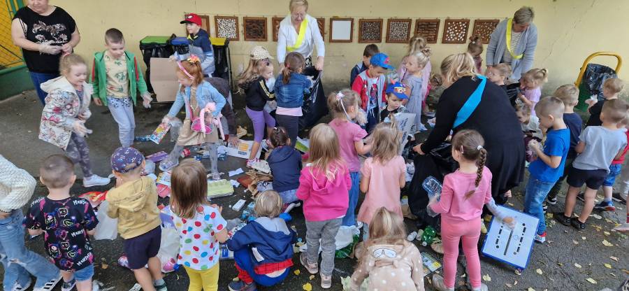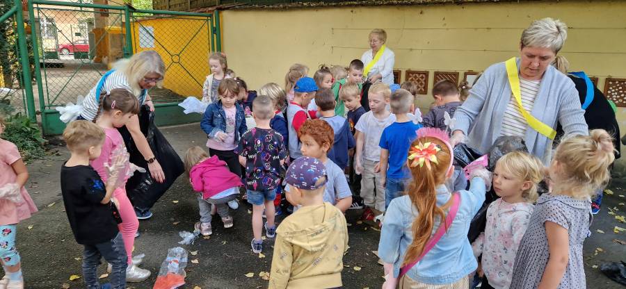 W dniu 15.09.2023 w naszym przedszkolu dzieci brały udział w akcji sprzątania świata pod hasłem " Sprzątanie świata łączy ludzi". Dzieci zapoznały się z Kodeksem Małego Ekologa,utrwaliły zasady poprawnej segregacji odpadów, kształtowały nawyki proekologiczne. Przedszkolaki wiedzą jak dbać o najbliższe środowisko.