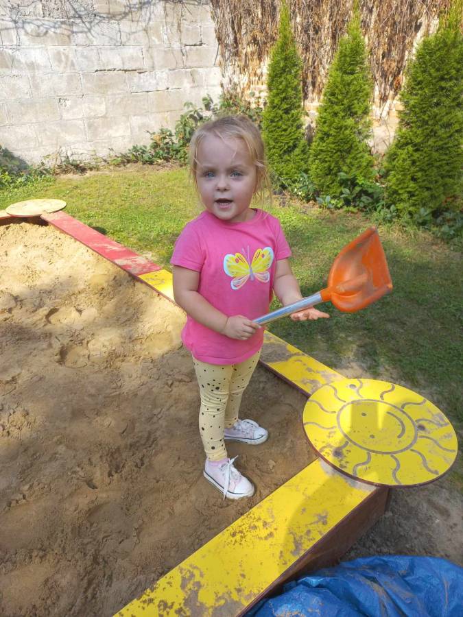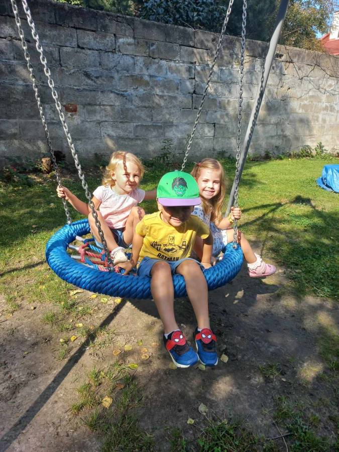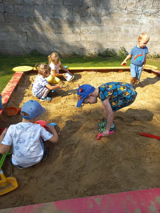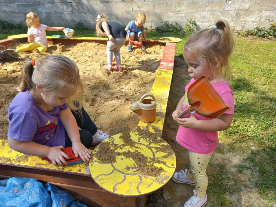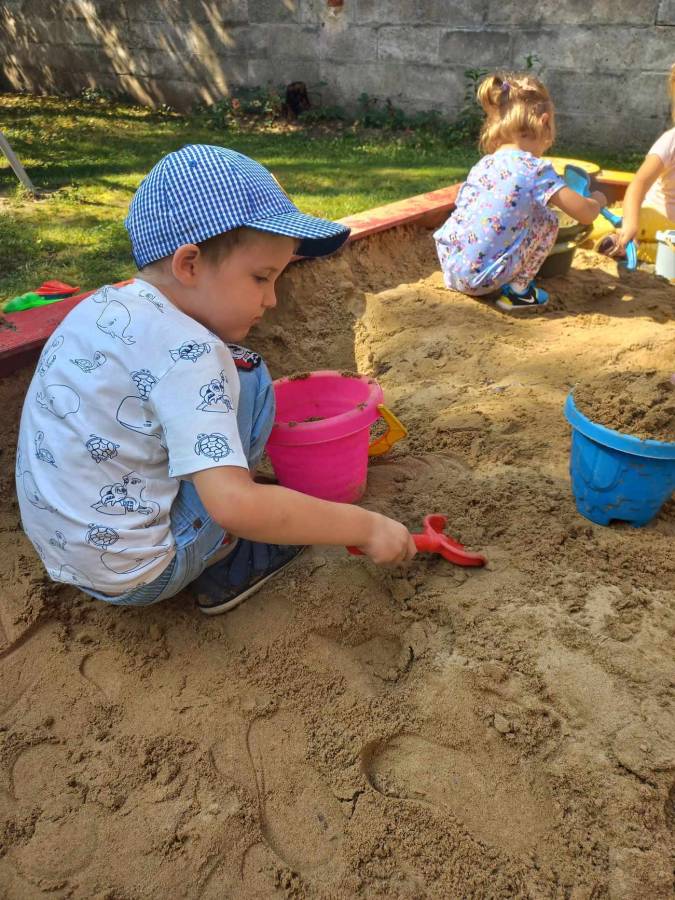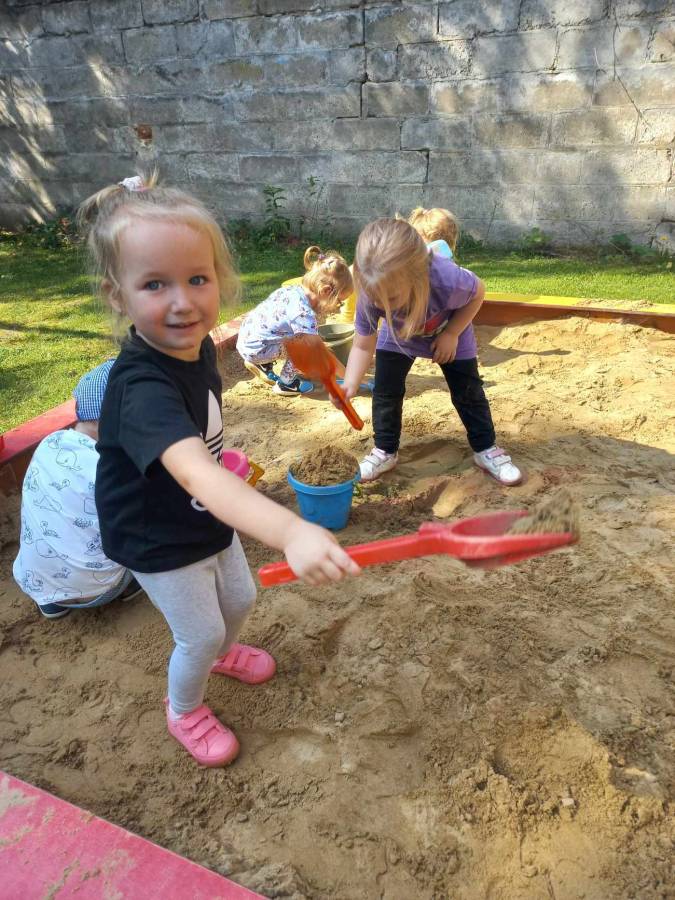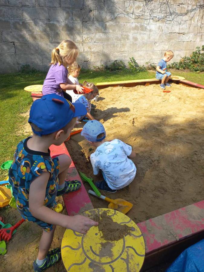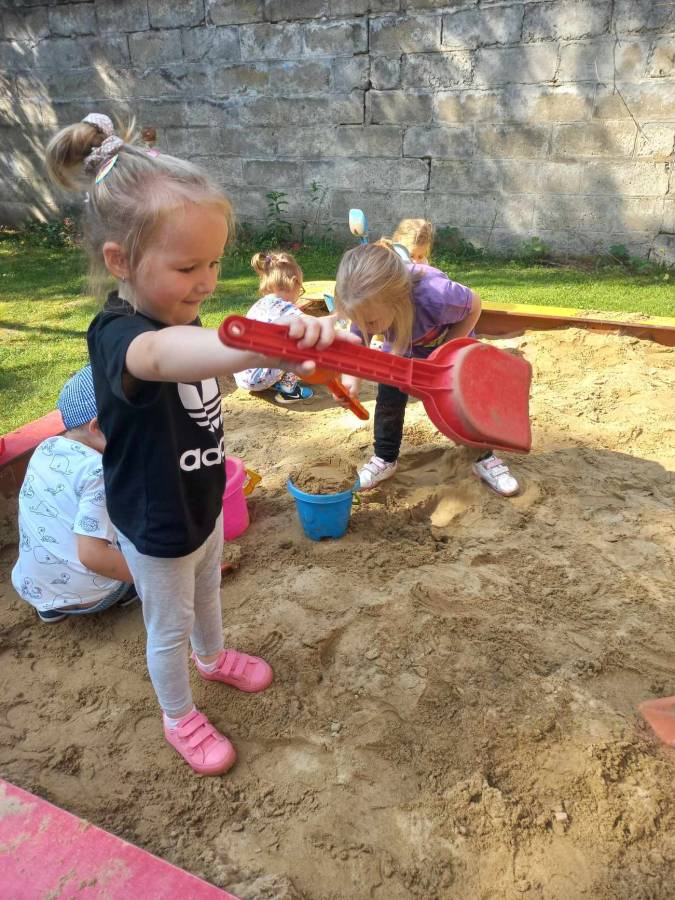 Zabawy maluszków w przedszkolnym ogrodzie.