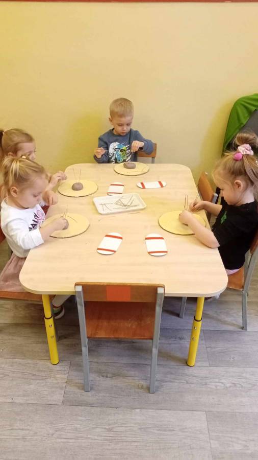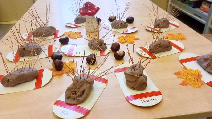 20.10.2023 maluszki ulepiły z masy solnej jeżyki. Było to dla dzieci ciekawe zadanie. W naszej pracy wykorzystaliśmy naturalne zasoby z naszego ogrodu przedszkolnego. Powstały twórcze prace, a wykonanie zadania sprawiło dzieciom wiele radości.