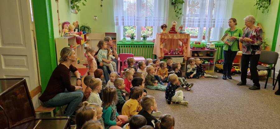26.10.2023 w ramach narodowego czytania gościliśmy w naszym przedszkolu wspaniałych gości - uczestników Środowiskowego Domu Samopomocy "Zielona przystań". Panie czytały nam wiersze Juliana Tuwima, Jana Brzechwy. Wspólne spotkanie uwrażliwiło nas nie tylko na piękno czytanej literatury, ale również na bliski kontakt z osobami starszymi. Serdecznie dziękujemy.