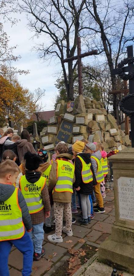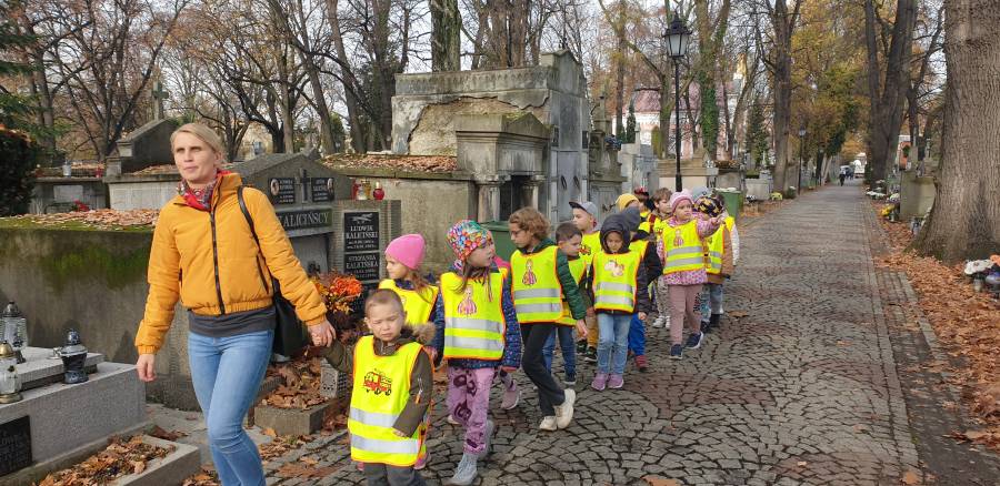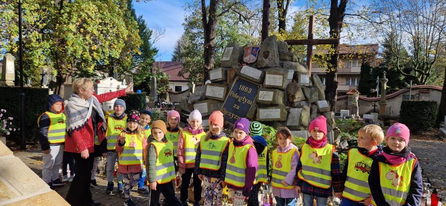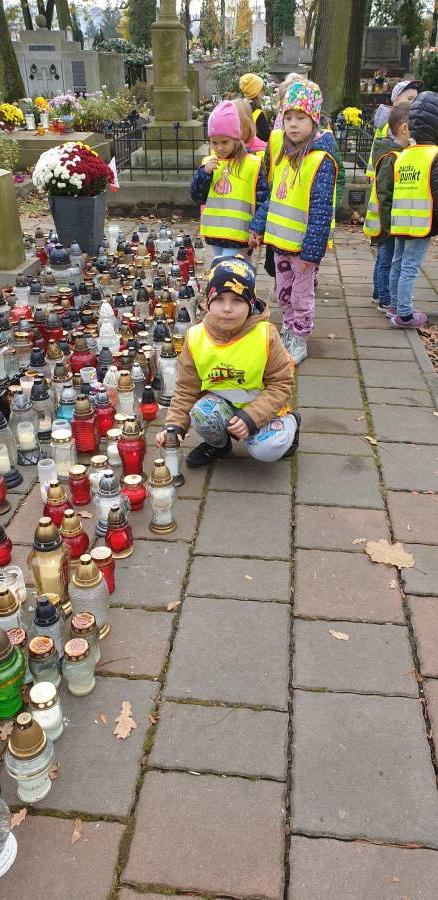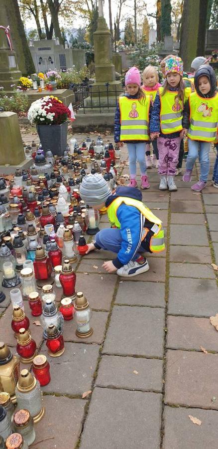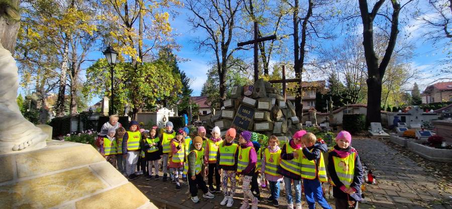 Dzieci z oddziału III uczestniczyły w wycieczce na Stary Cmentarz w Tarnowie, złożyły hołd poległym bohaterom, którzy walczyli za naszą Ojczyznę. Przedszkolaki zapaliły znicze oddając hołd żołnierzom.Była to doskonała lekcja wychowania obywatelskiego i patriotycznego, która uczy od najmłodszych lat szacunku dla zmarłych, odpowiedniego zachowania się na cmentarzach oraz obowiązku dbania o cmentarze.