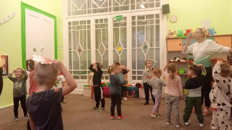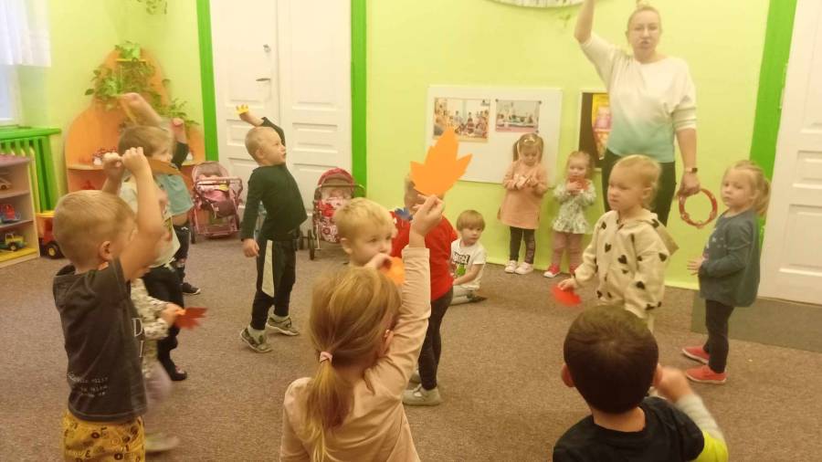 W październiku odbyły się kolejne zajęcia koleżeńskie. Podczas zajęć o "Pani Jesieni" dzieci rozwijały poczucie rytmu, odtwarzały rytmy za pomocą ruchu oraz przypominały kolory jesiennych liści oraz ich nazwy.