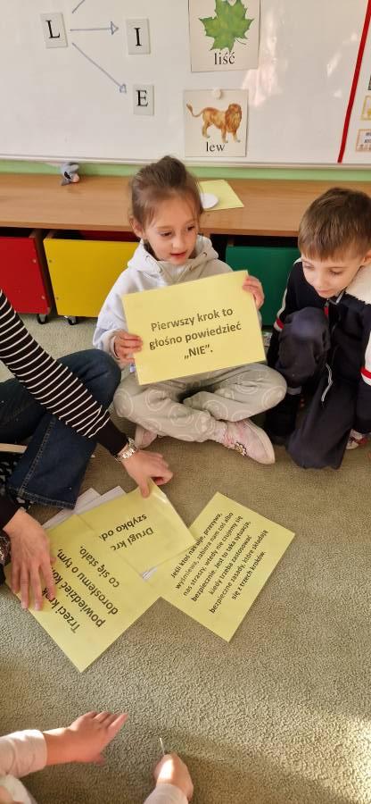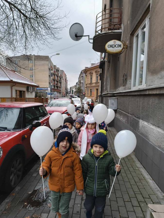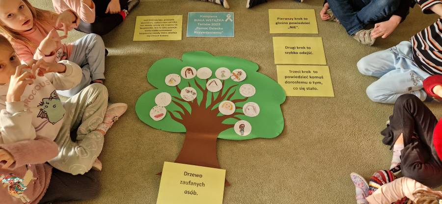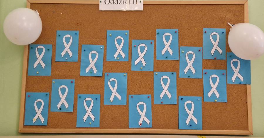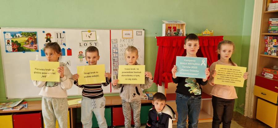 Już kolejny raz uczestniczyliśmy w Kampanii " Biała Wstążka" Jest to akcja społeczna, której tegoroczne hasło brzmi " Pomoc dziecku krzywdzonemu" . Ma ona na celu zwrócenie uwagi na problem przemocy wobec dzieci .Organizatorem kampanii jest Centrum Usług Społecznych wraz z policją. Przedszkolaki uczestniczyły w szeregu zajęć na terenie przedszkola : sport przeciw przemocy, malowały symbol akcji, uczestniczyły w zajęciach dydaktyczno - wychowawczych, warsztatach "Bezpieczny przedszkolak"- dzieci poznały zasady trzech kroków oraz wykonały drzewo zaufania,maszerowały ulicami miasta z białymi balonikami. Nasze działania miały uwrażliwić dzieci, że żaden człowiek a szczególnie dzieci nie mogą cierpieć i być smutne.
