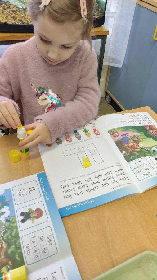 30.11.2023 odbyły się zajęcia koleżeńskie. Dzieci z oddziału III poznawały kolejną literę "l, L" jak lalka. Przedszkolaki dokonywały syntezy słuchowej, rozwiązywały rebusy w których głoska "l" znajdowała się na początku, w środku lub na końcu wyrazu oraz przeliczały za pomocą liczmanów ilość głosek w wyrazach.