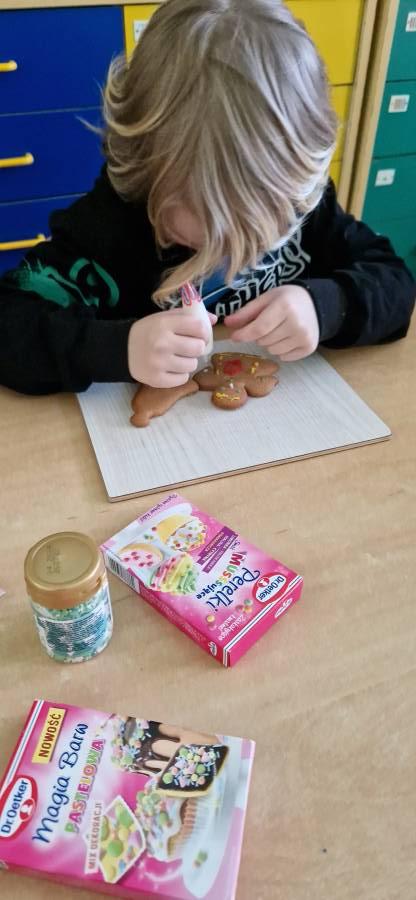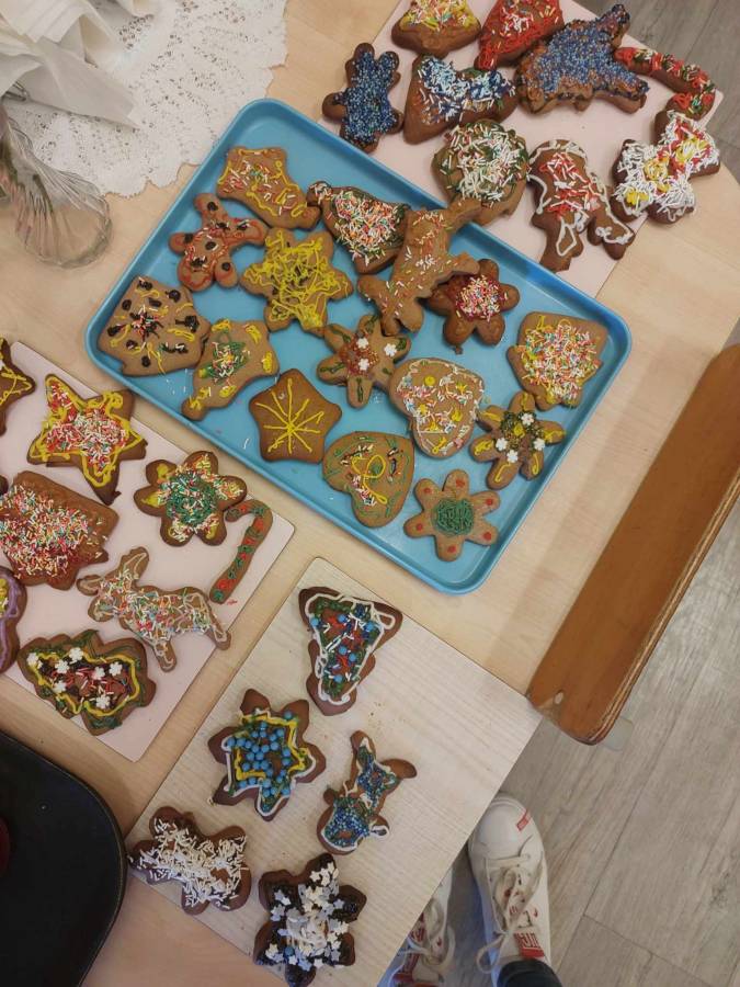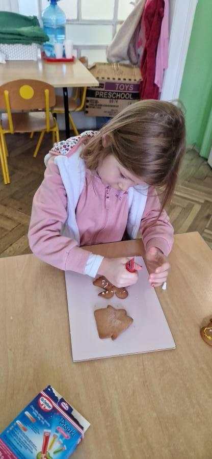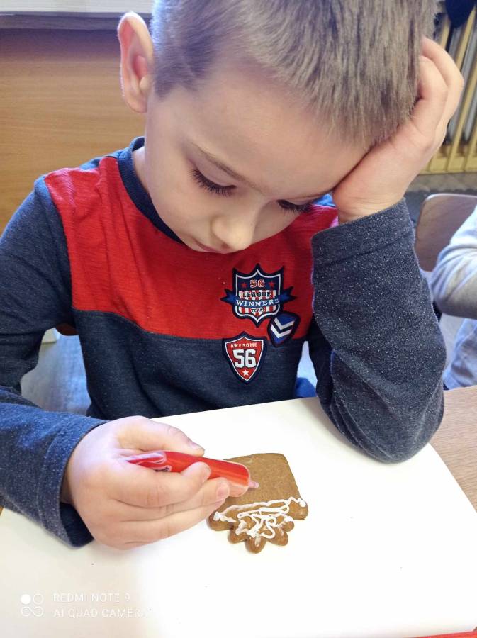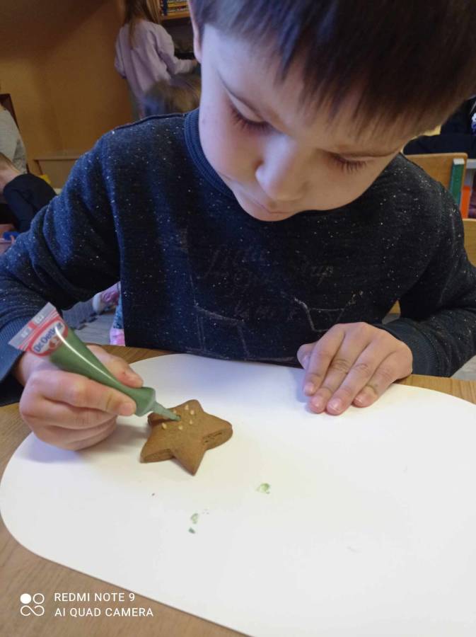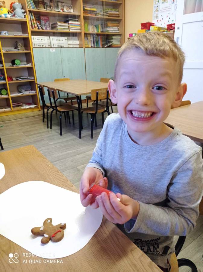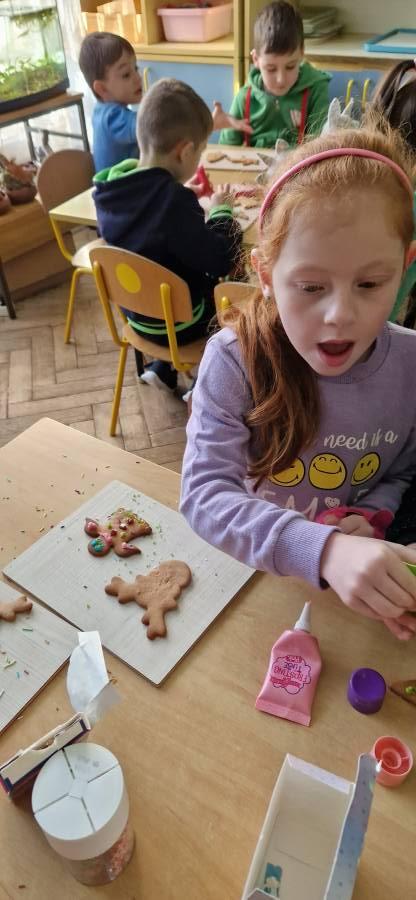 "Pieczemy świąteczne pierniczki" warsztaty kulinarne w naszym przedszkolu. Dzieci z niewielką pomocą piekły, a następnie ozdabiały pierniczki. Wszędzie unosił się cudowny zapach cynamonu, miodu, przypraw korzennych przypominających o zbliżających się świętach. Zabawa była doskonała i sprawiła przedszkolakom wiele radości. Pięknie przyozdobione pierniki mogą stać się wspaniałą dekoracją choinki,stroika czy świątecznego stołu.A ich intensywny aromat może towarzyszyć przez całe Boże Narodzenie.