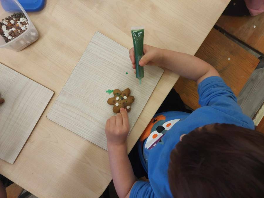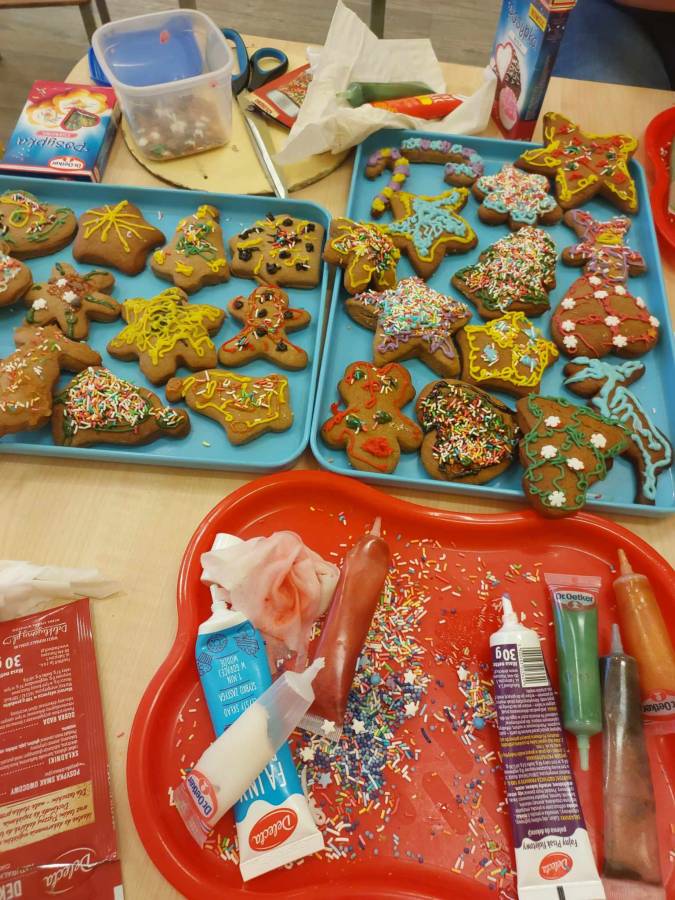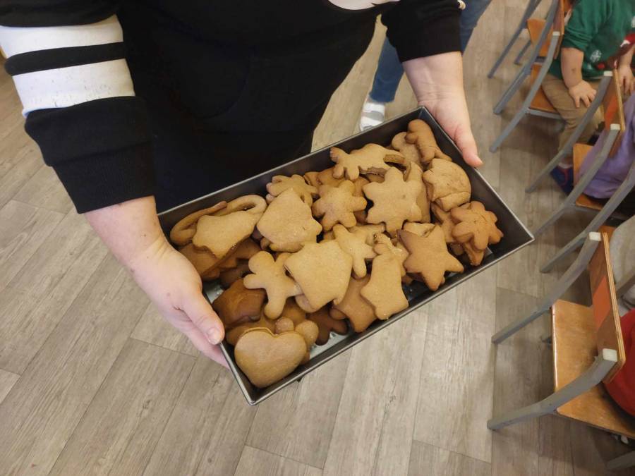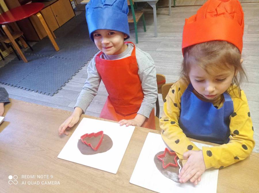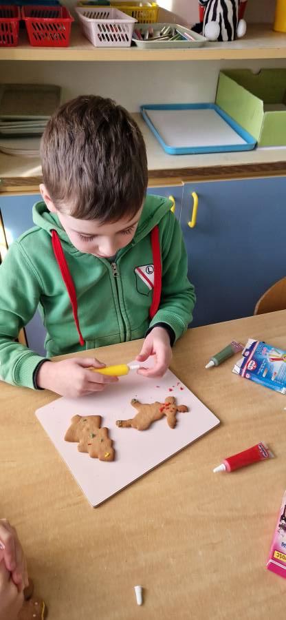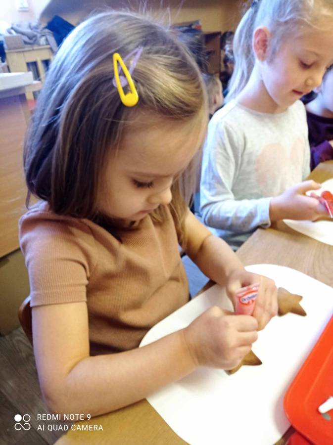 "Pieczemy świąteczne pierniczki" warsztaty kulinarne w naszym przedszkolu. Dzieci z niewielką pomocą piekły, a następnie ozdabiały pierniczki. Wszędzie unosił się cudowny zapach cynamonu, miodu, przypraw korzennych przypominających o zbliżających się świętach. Zabawa była doskonała i sprawiła przedszkolakom wiele radości. Pięknie przyozdobione pierniki mogą stać się wspaniałą dekoracją choinki,stroika czy świątecznego stołu.A ich intensywny aromat może towarzyszyć przez całe Boże Narodzenie.