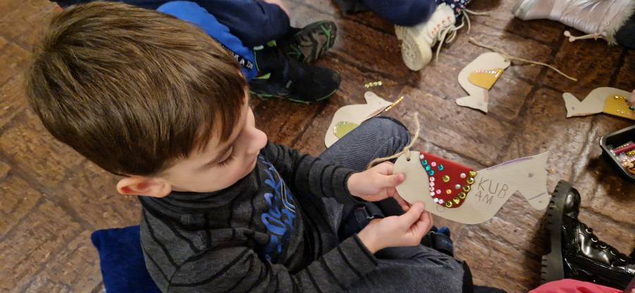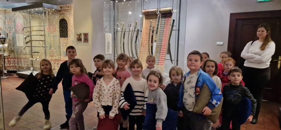 12.12.2023 dzieci z oddziału III po raz kolejny odwiedziły tarnowski Ratusz. Uczestniczyły w drugich zajęciach muzealnych na których zwiedzały zbrojownię. Po zajęciach każde dziecko wykonało swojego konika. któremu rysowały elementy zbroi, a także ozdabiały je cekinami.
