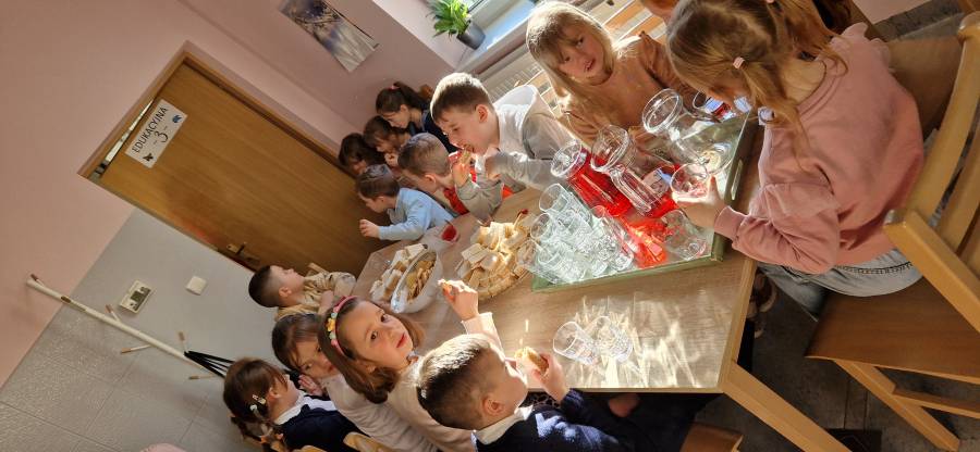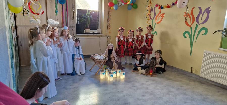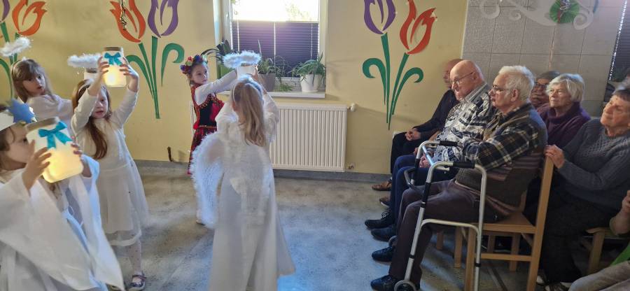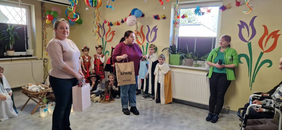 "Bo w życiu to wszystko lepiej smakuje, jak jest przyprawione miłością " W dniu dzisiejszym 29.01.2024 nasze przedszkolaki udały się do Środowiskowego Domu Samopomocy "Zielona przystań" z inscenizacją Jasełek , która seniorom sprawiła wielką radość. Kontakt z osobami starszymi to dla dzieci wspaniała lekcja wrażliwości. Przedszkolaki miały dla seniorów niespodziankę w postaci aromatycznych herbatek. Serdecznie dziękujemy dzieciom i ich rodzicom w zaangażowanie się w akcję "Herbatka dla seniora"
