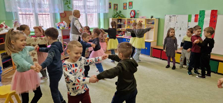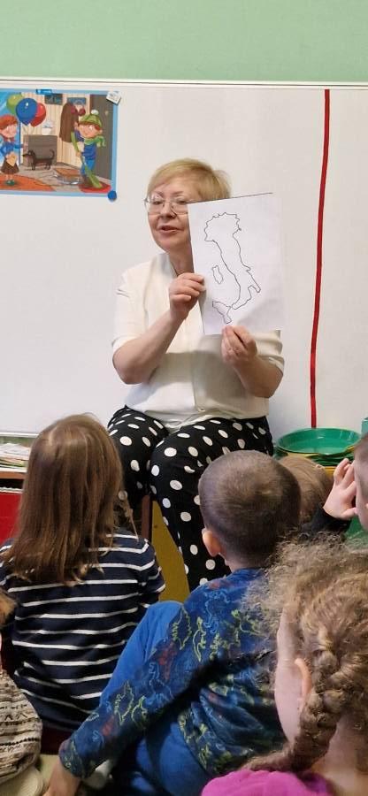 Poznanie kraju na podstawie ilustracji. Rozbudzanie zainteresowania kulturą i językiem Włoch poprzez zabawy ruchowe, naukę tańca Tarantella, wykonanie pracy plastycznej: flaga Włoch, oraz wykonanie wulkanu. Dzieci wysłuchały również o przygodach ?Pinokio? autor Carlo Collodi.
