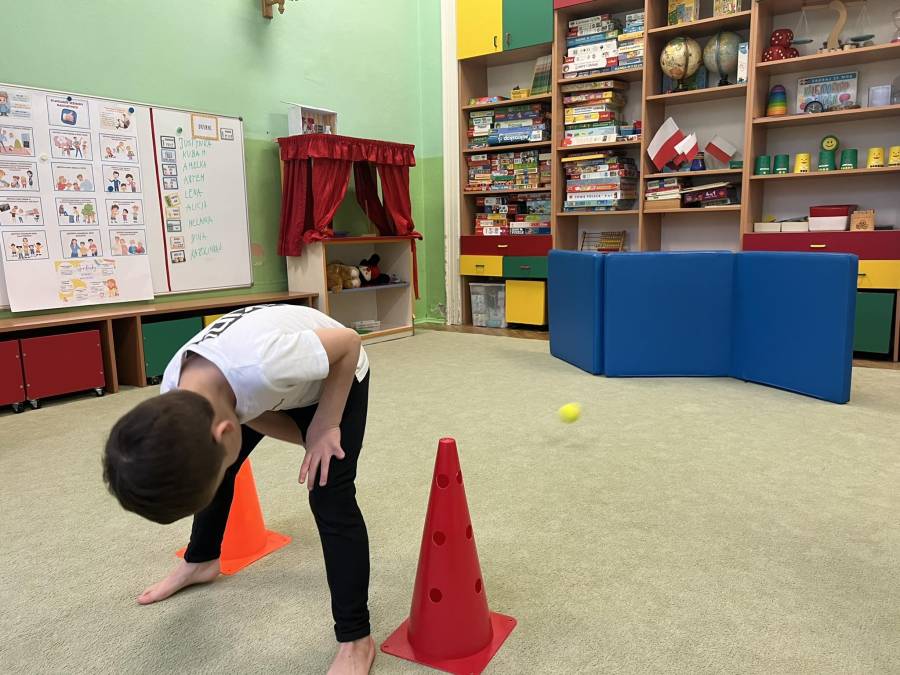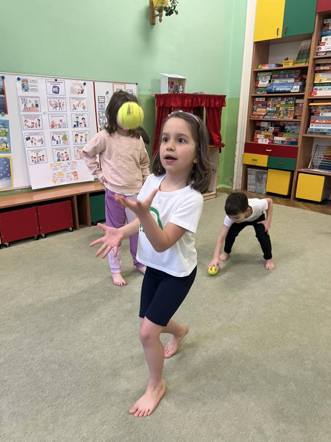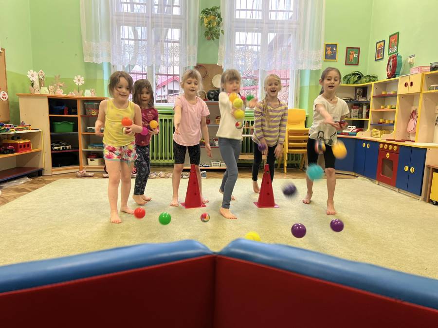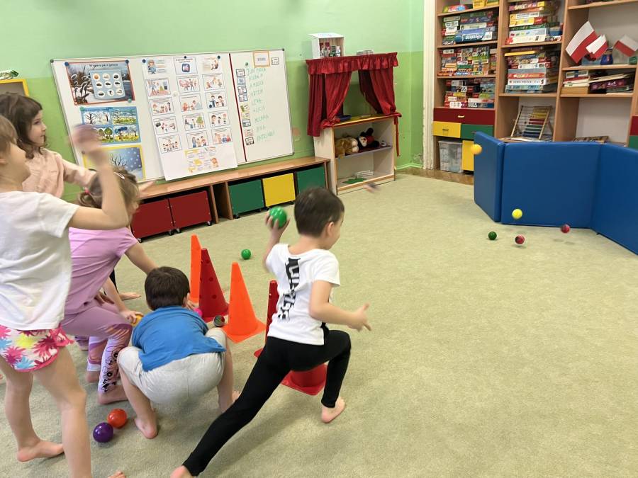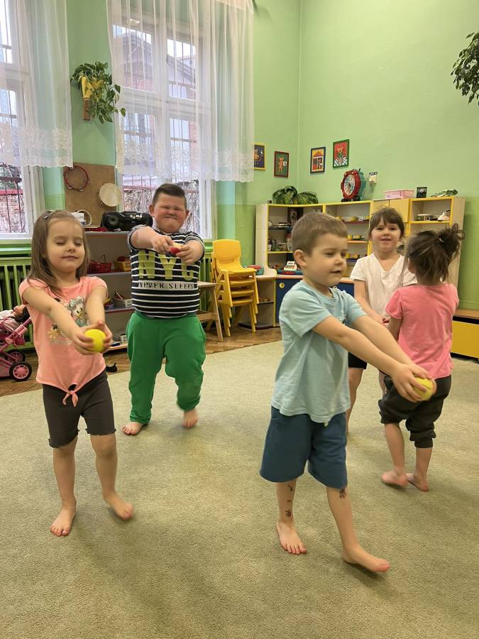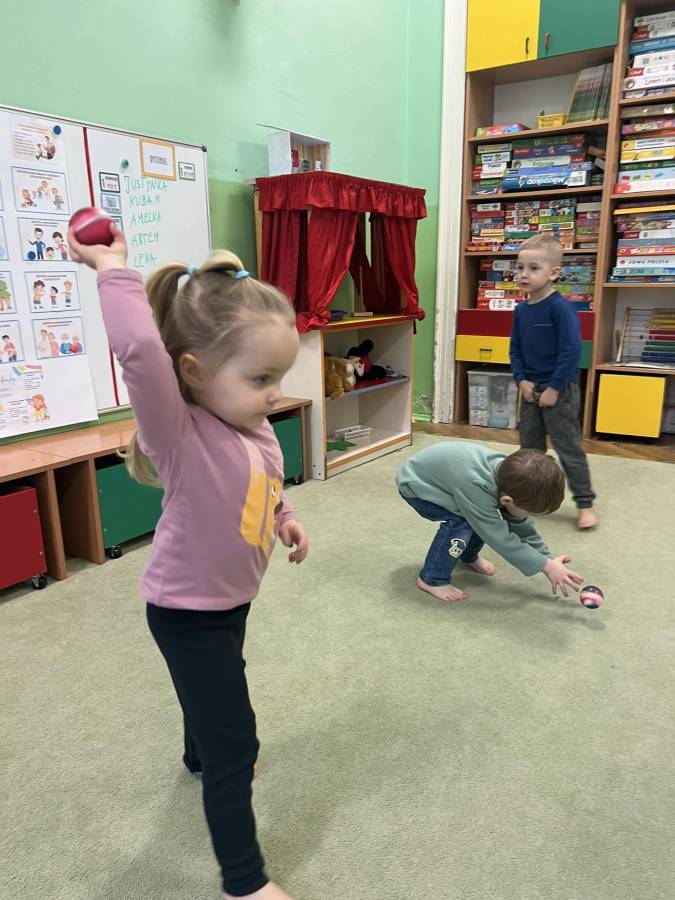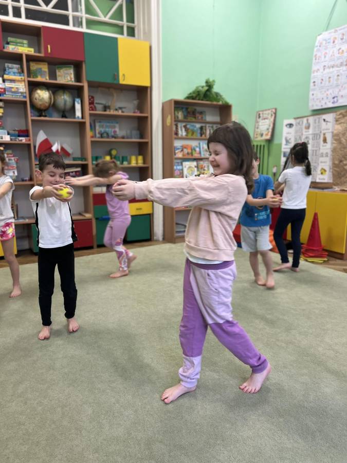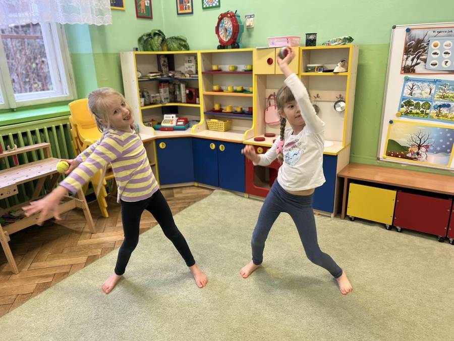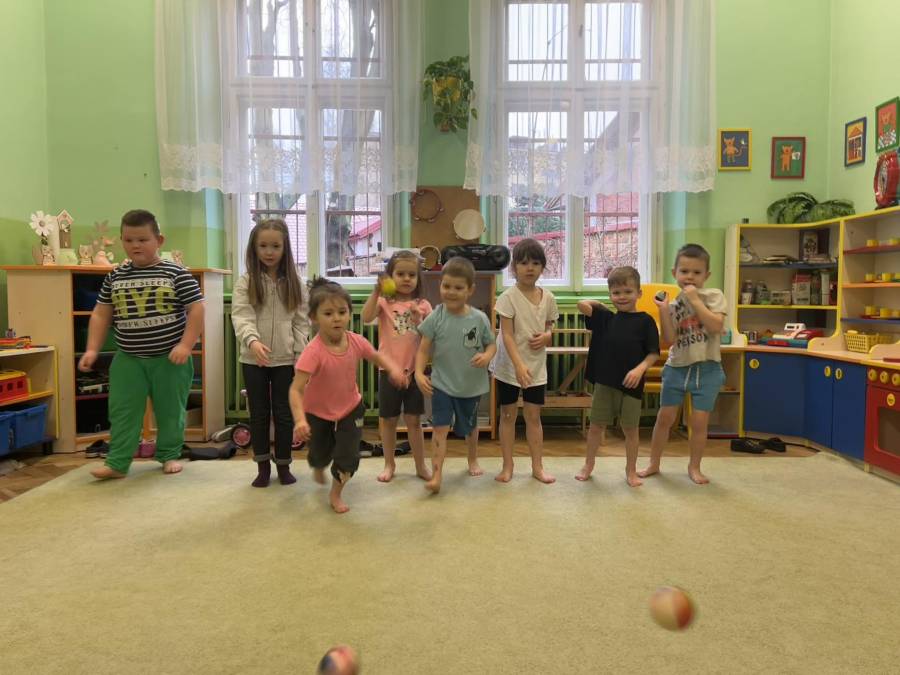 W marcu jak w garncu - czyli trochę słońca, deszczu, burzy i mgły podczas gimnastyki korekcyjnej. Zajęcia z piłkami realizowane z projektu Zdrowo i Sportowo, wzmacniające mięśnie obręczy barkowej oraz kształtujące koordynację oko-ręka.