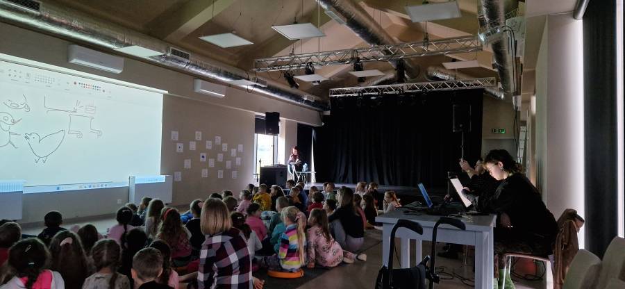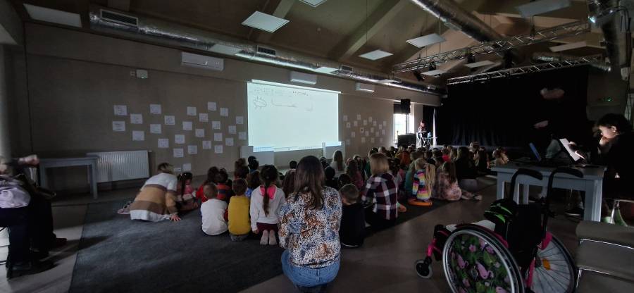 14.03.2024 najstarsze przedszkolaki udały się do Domu Kultury na os. Westerplatte na zajęcia " Poczytanki rysowanki" Rysunkowe spotkanie z książką dla dzieci małych i mniejszych. Dzieci wybrały się na urodziny wybranych zwierząt. Opowiastki przeczytała pani Magda Trusz,a szybkie rysunki inspirowane opowieściami stworzyła uczennica liceum sztuk plastycznych Marcelina Bielany.