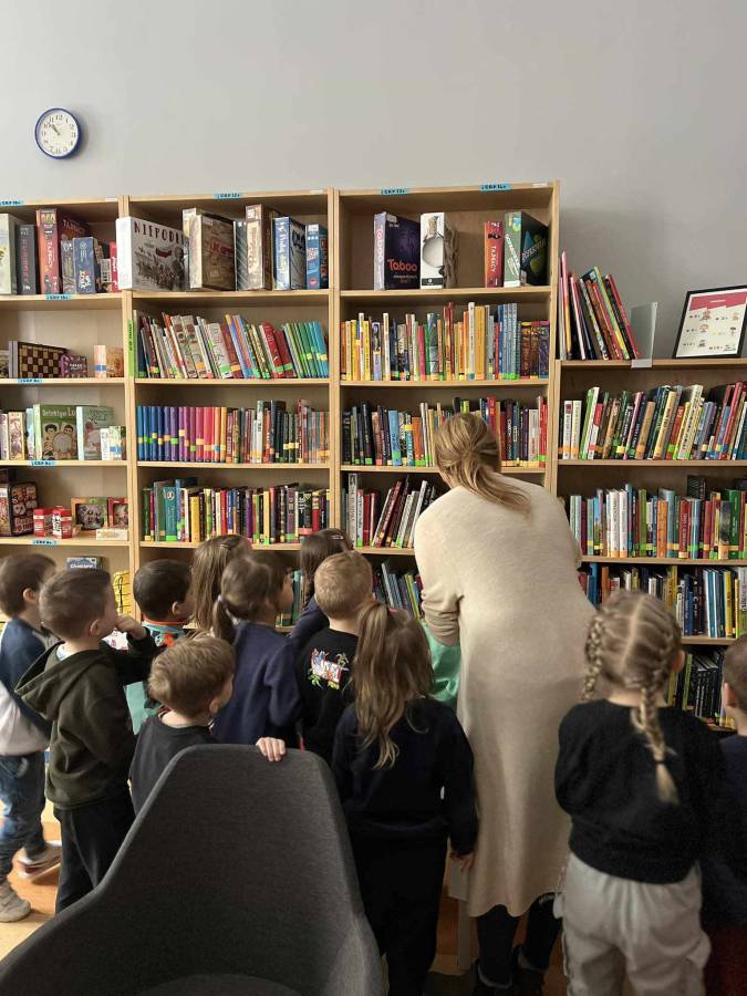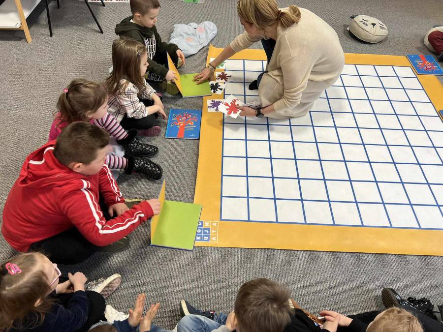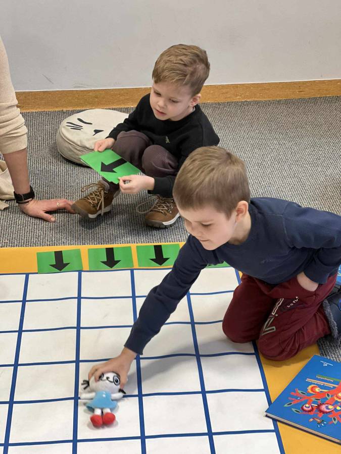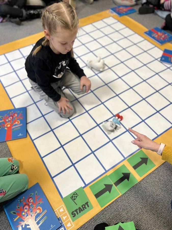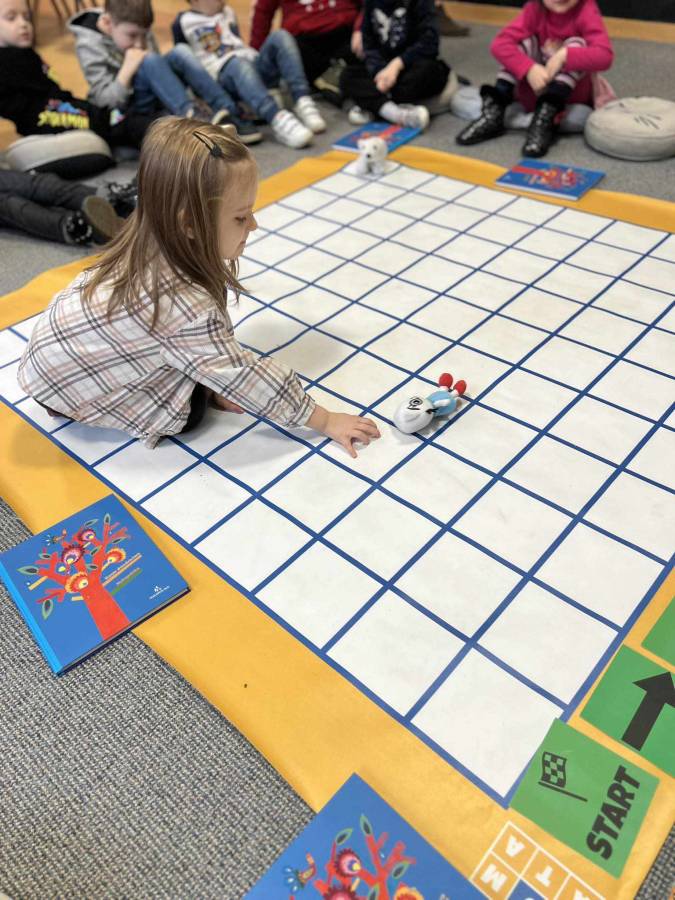 Dnia 18.03,2024 dzieci z oddziału ll udały się do Biblioteki Pedagogicznej na zajęcia pt ,,Kodowanie na bibliotecznym dywanie"