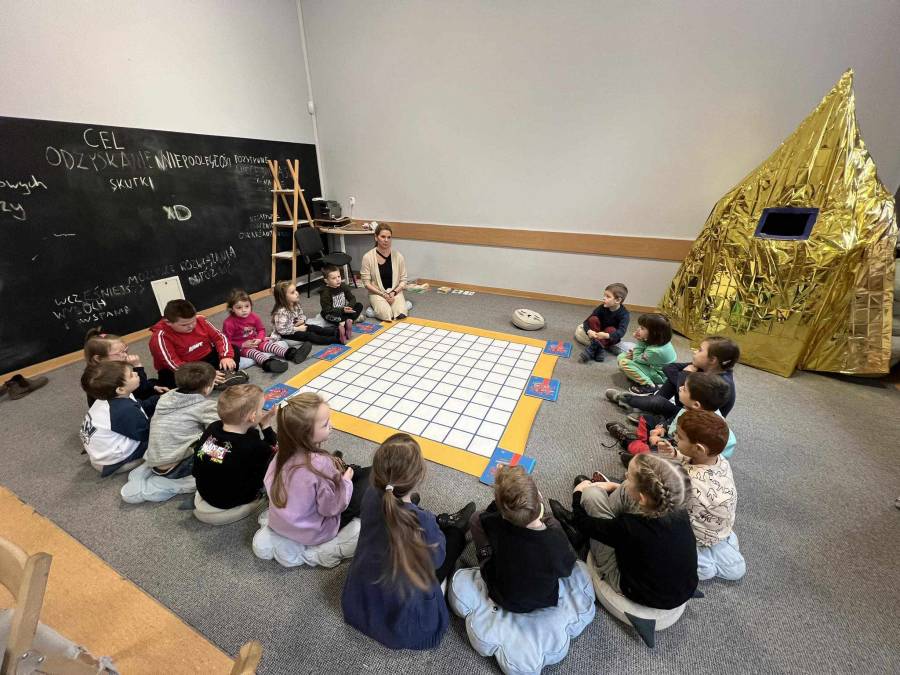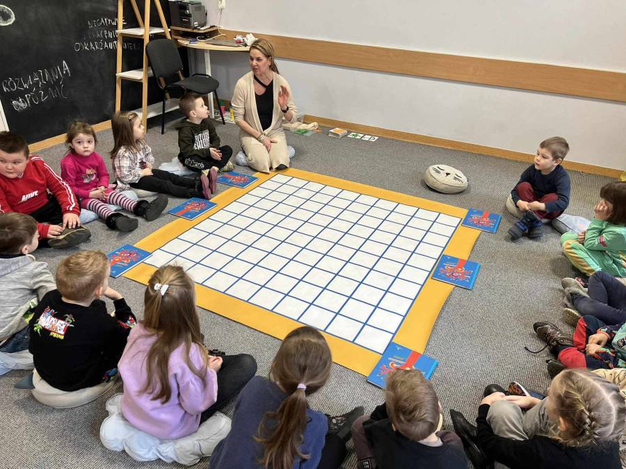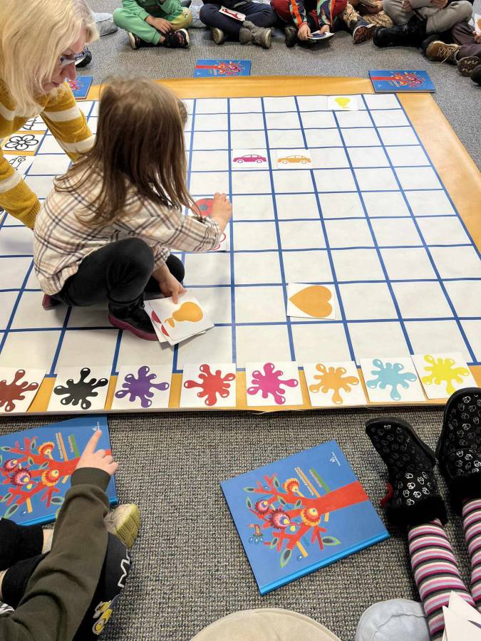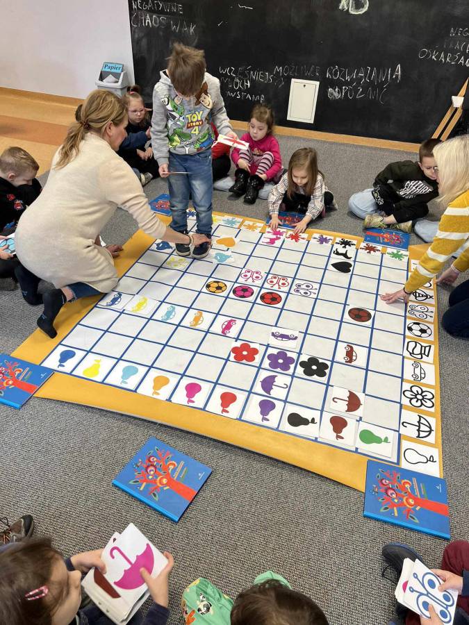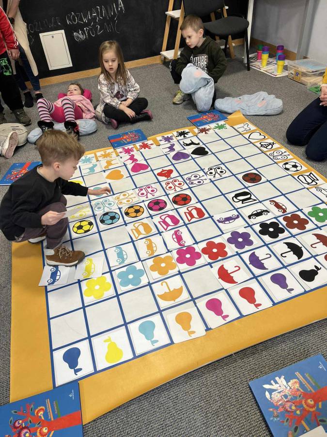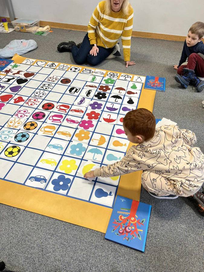 Dnia 18.03,2024 dzieci z oddziału ll udały się do Biblioteki Pedagogicznej na zajęcia pt ,,Kodowanie na bibliotecznym dywanie"