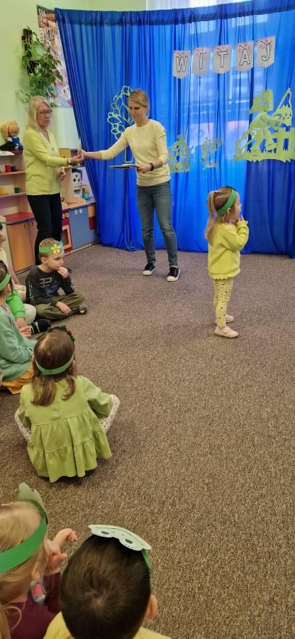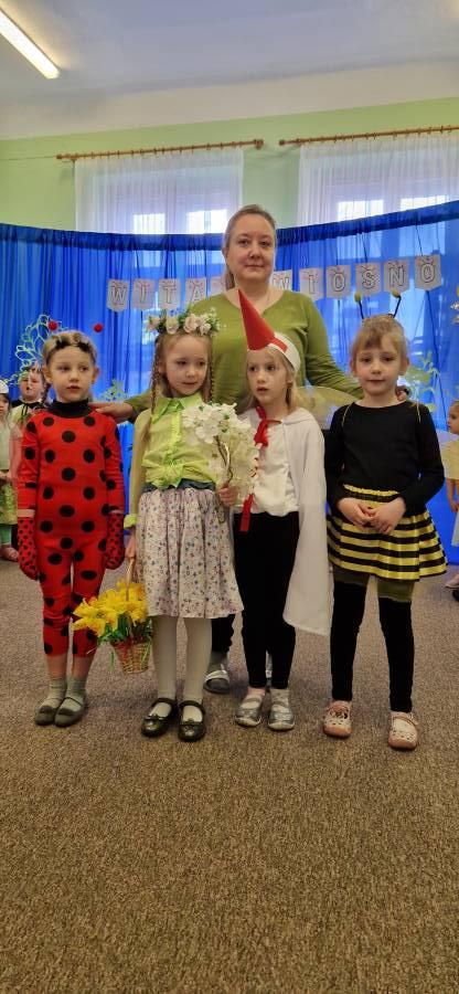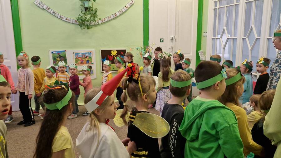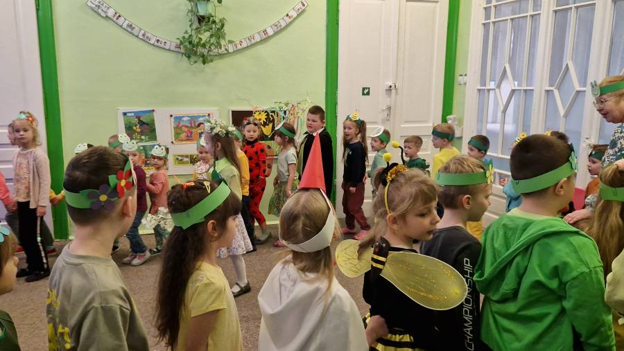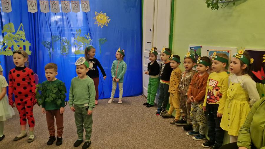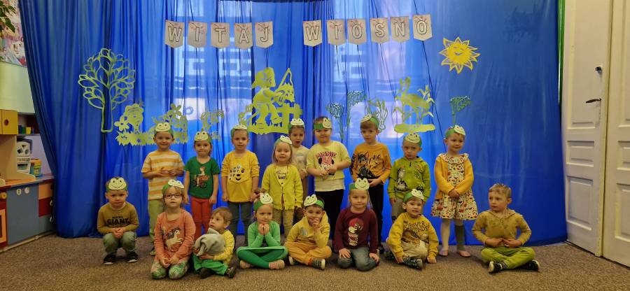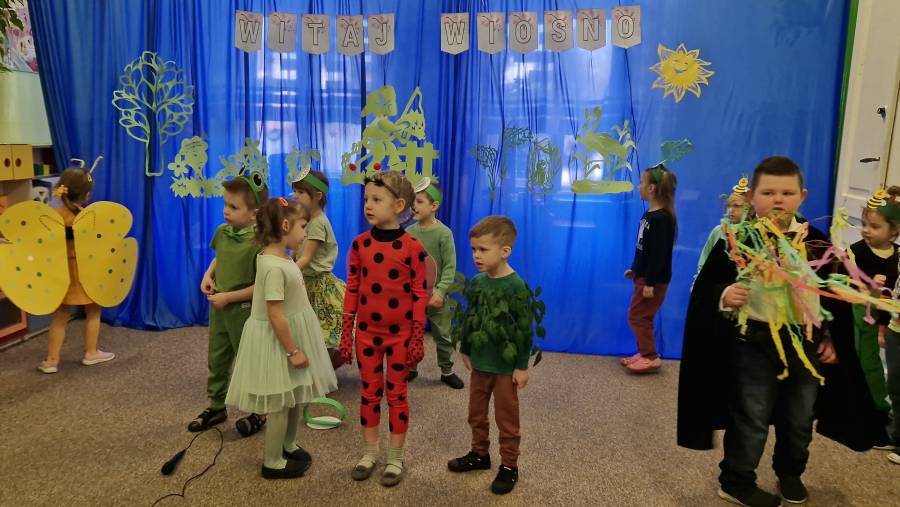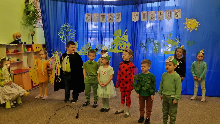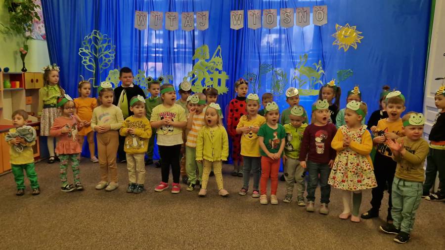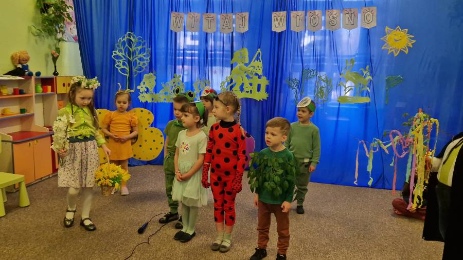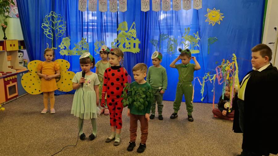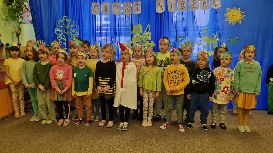 Dzień 21 marca w naszym przedszkolu był szczególnie radosny i kolorowy. Żegnanie zimy i przywitanie wiosny związane jest bowiem z miłymi przeżyciami wszystkich przedszkolaków. Przyjście nowej pory roku -wiosny jest doskonałą okazją do tego, by uzmysłowić dzieciom, jak wielkie bogactwo niesie ze sobą budząca się do życia przyroda. Podczas uroczystości dzieci miały okazję przywitać Wiosnę wierszykami, piosenkami i tańcem.