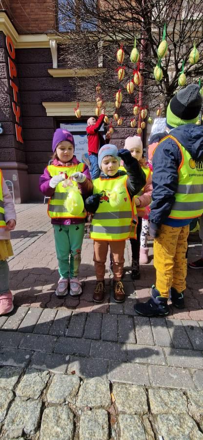 Pisankowy desant 2024 21.03.2024 przedszkolaki z naszego przedszkola udały się na ulicę Wałową, aby świątecznie przyozdobić drzewko. Ulica Wałowa wypełniła się kolorowymi pisankami przygotowanymi przez dzieci. Serdecznie zachęcamy do rodzinnych spacerów ulicami naszego miasta