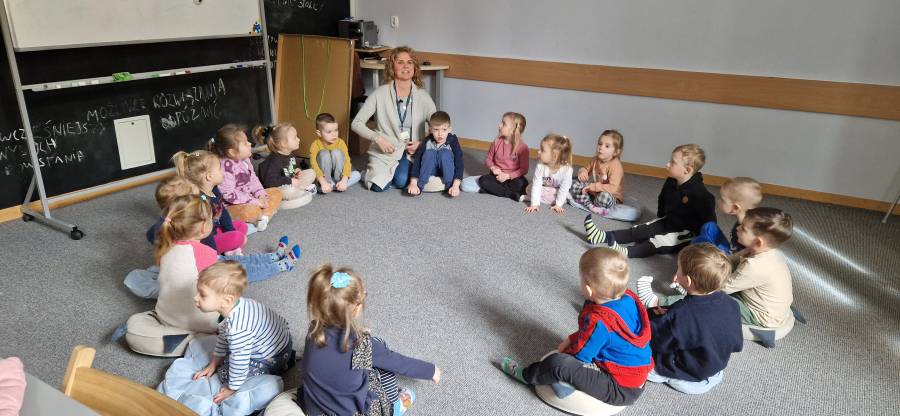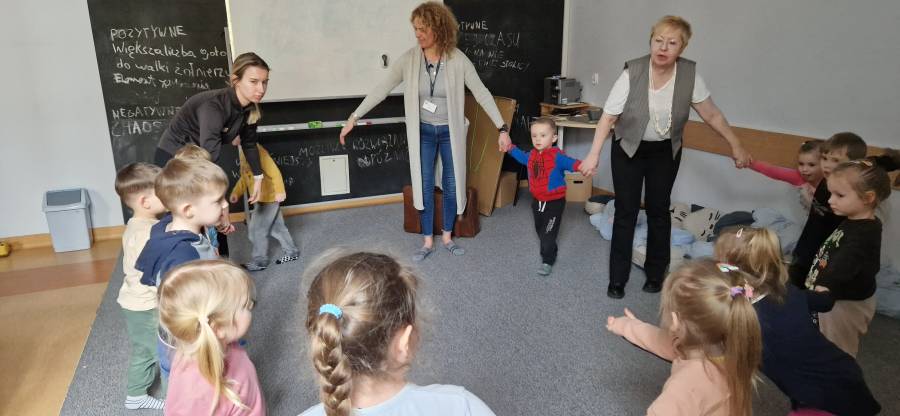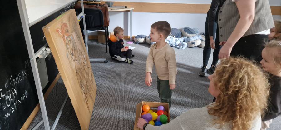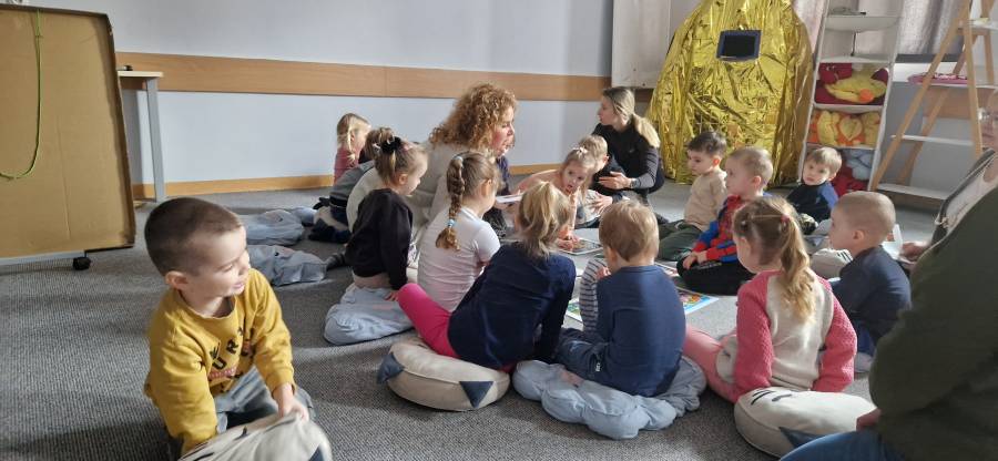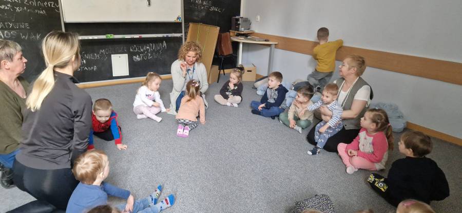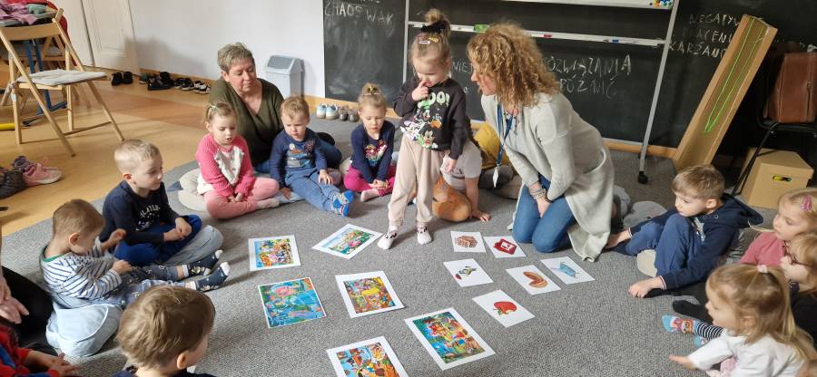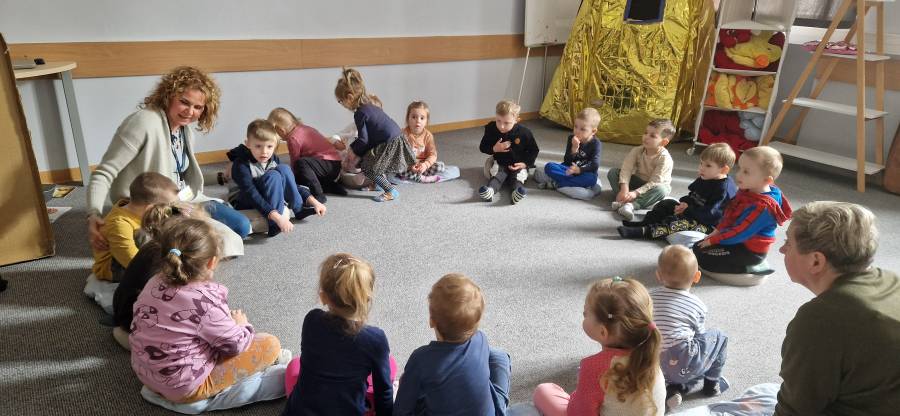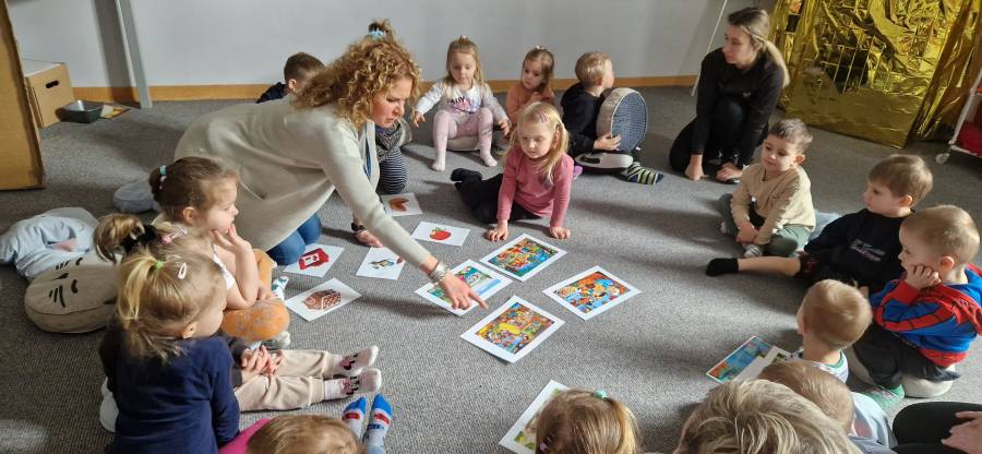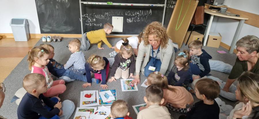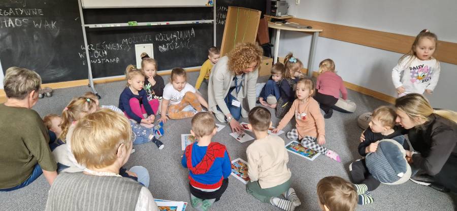 Przedszkolaki uczestniczyły w warsztatach kształcących sympatię do literatury, a więc w przyszłości do czytania książek. Zachęcały do uważnego słuchania opowieści oraz stwarzały okazję do pochwalenia się znajomością bajek przez dzieci.