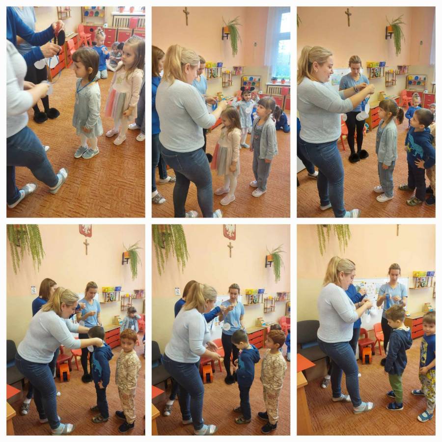 Pragnąc uczcić ten dzień 22 kwietnia w przedszkolu królował kolor niebieski, zarówno wśród naszych ubrań, jak również sale były przystrojone na niebiesko. Igrzyska rozpoczęły się od hymnu, wprowadzenia znicza olimpijskiego i zawieszenia flagi olimpijskiej. I jak na prawdziwe igrzyska przystało podczas ceremonii otwarcia była też część artystyczna ? taniec najstarszych przedszkolaków "Smerfów świat". Po oficjalnym otwarciu zorganizowaliśmy dla dzieci strefy z różnymi zadaniami do wykonania: sportową, kreatywności, fotobudkę, relaksu. Każde dziecko na koniec otrzymało niebieski medal.